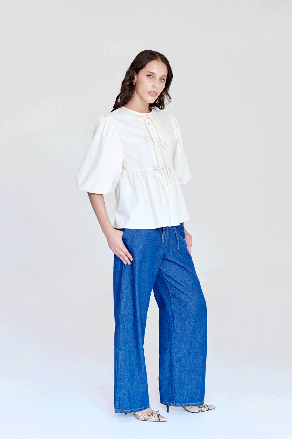 Camisa de manga aglobada y bordado.