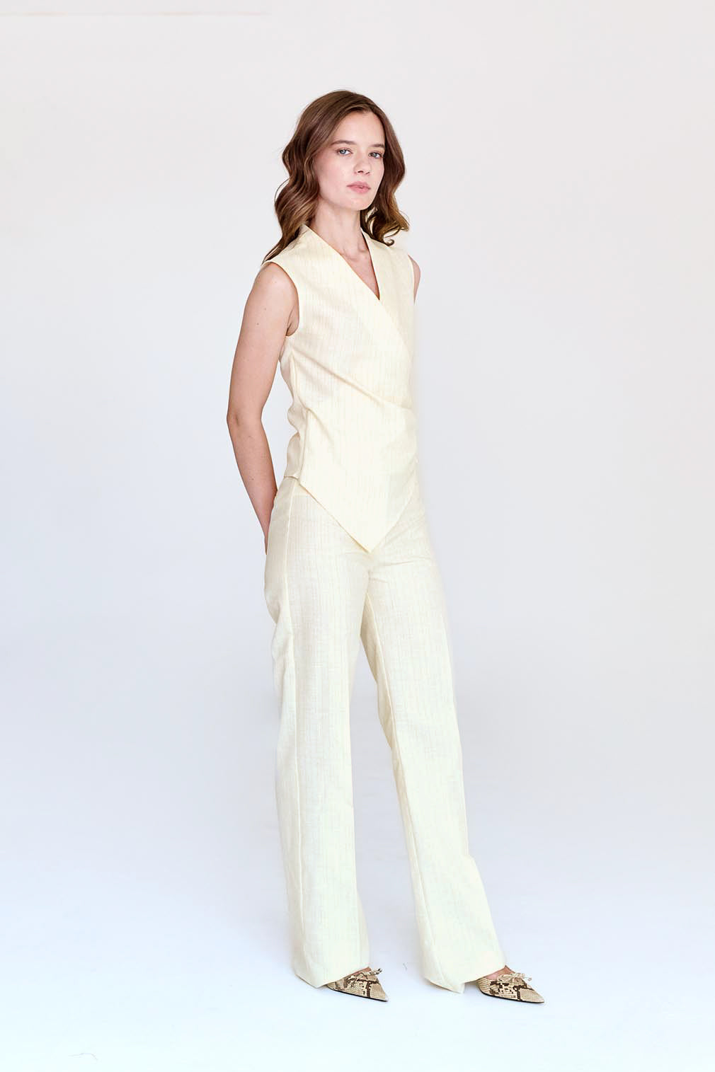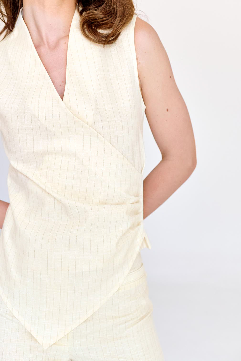 Blusa asimétrica, drapeada del costado con cierre invisible.