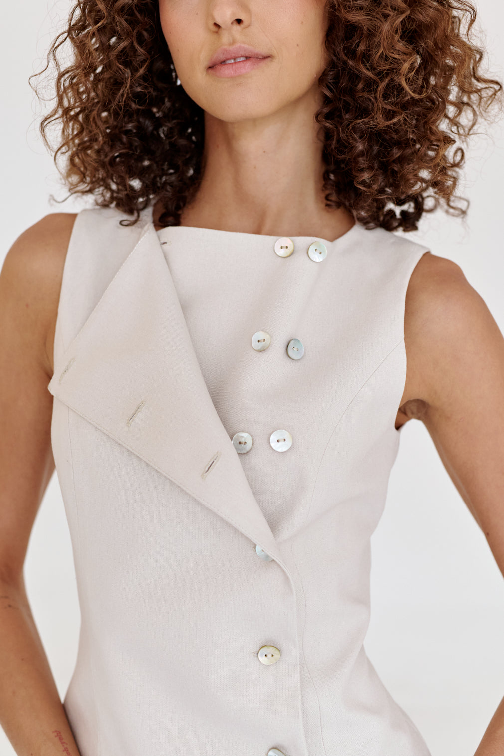 Chaleco de vestir con doble cruce y doble hilera de botones de concha