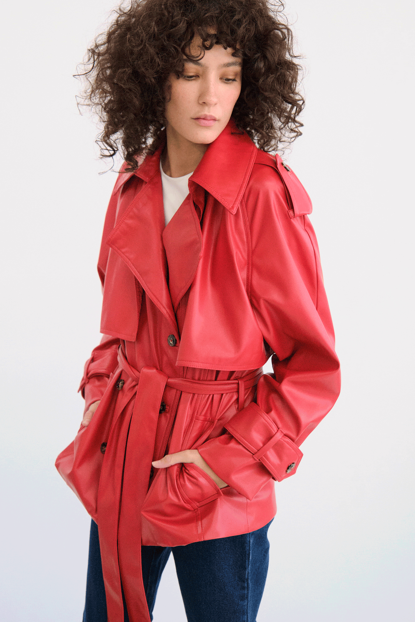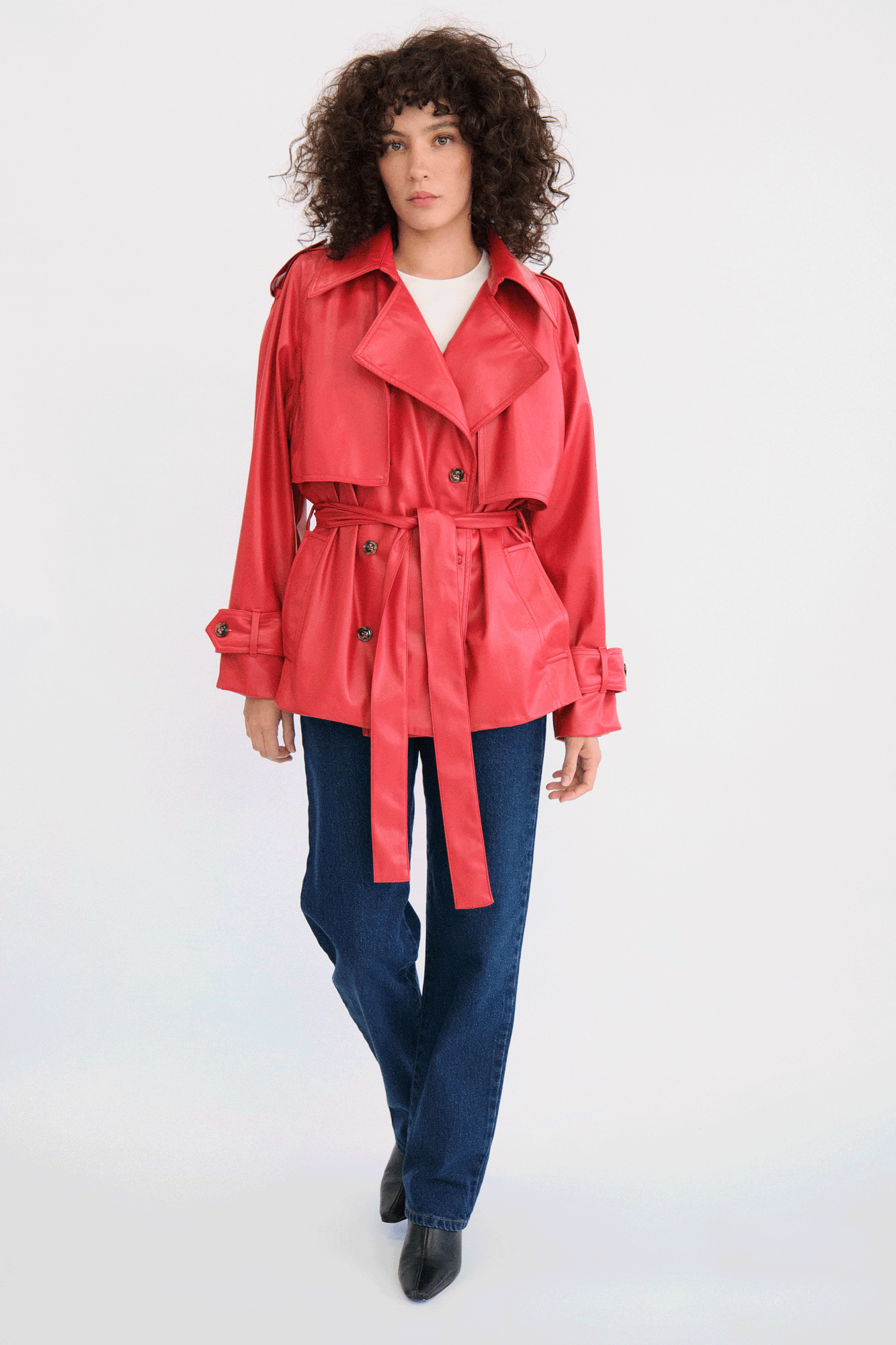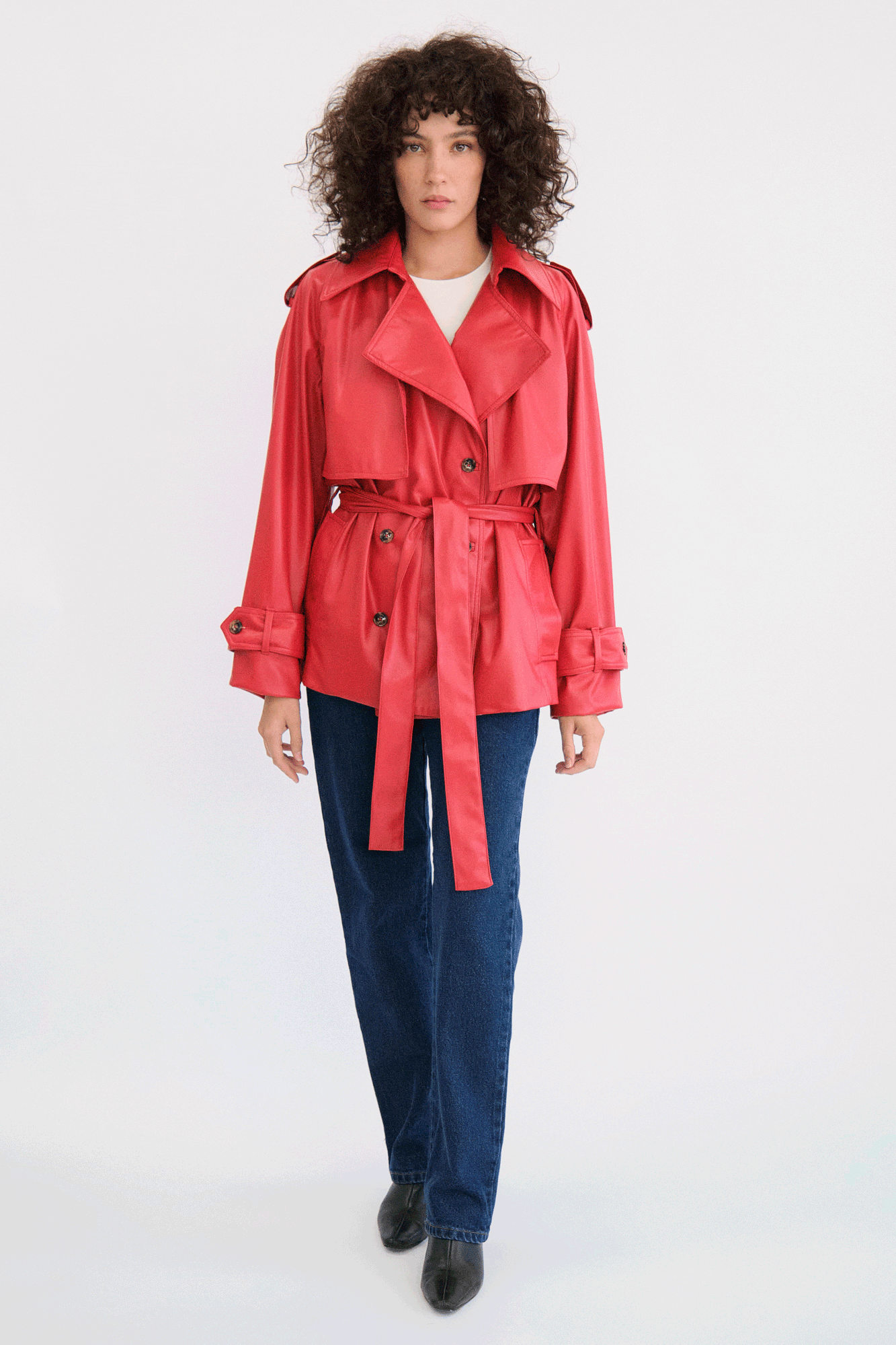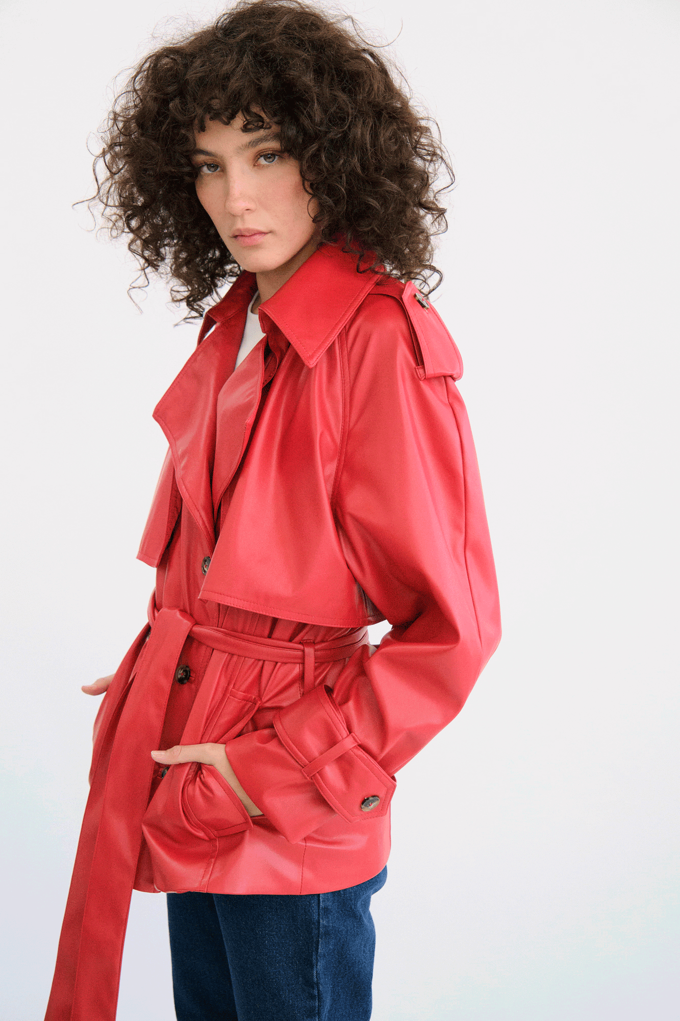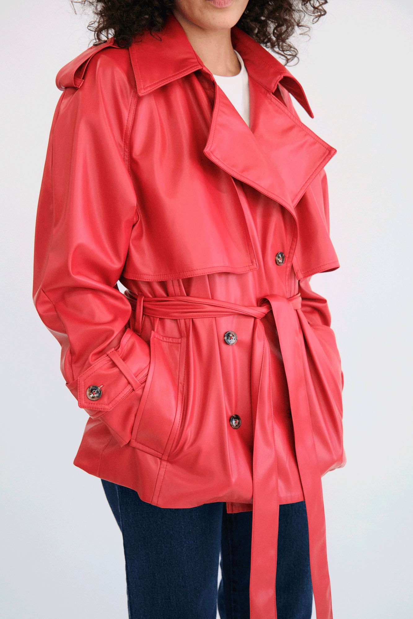 Chamarra tipo trench corto.