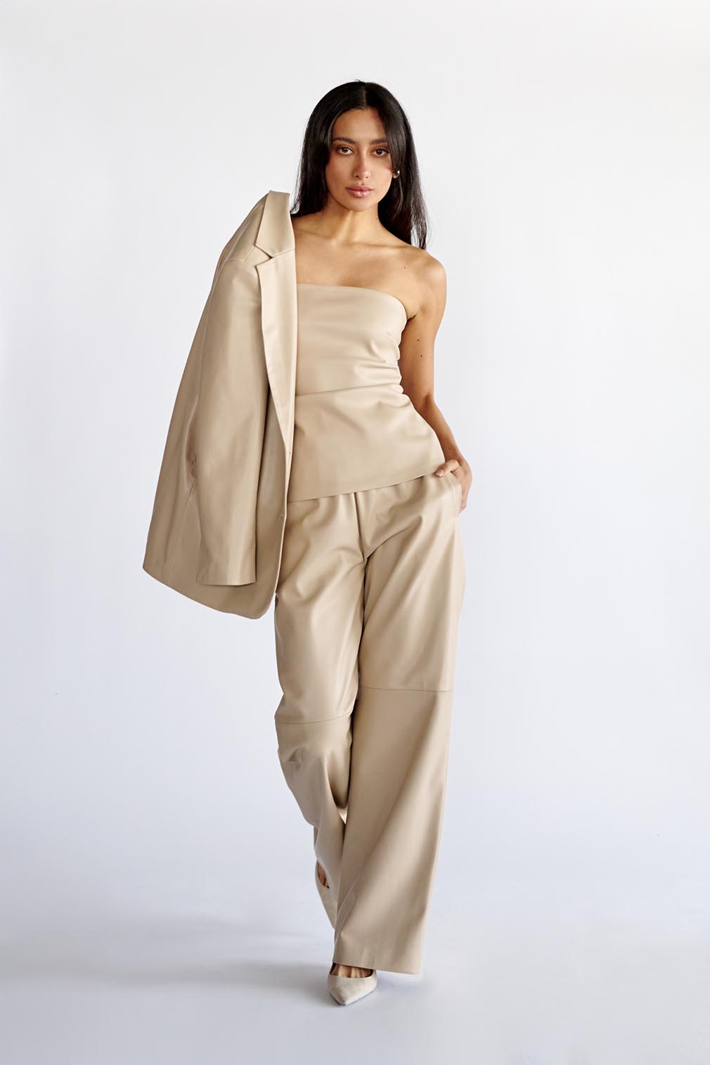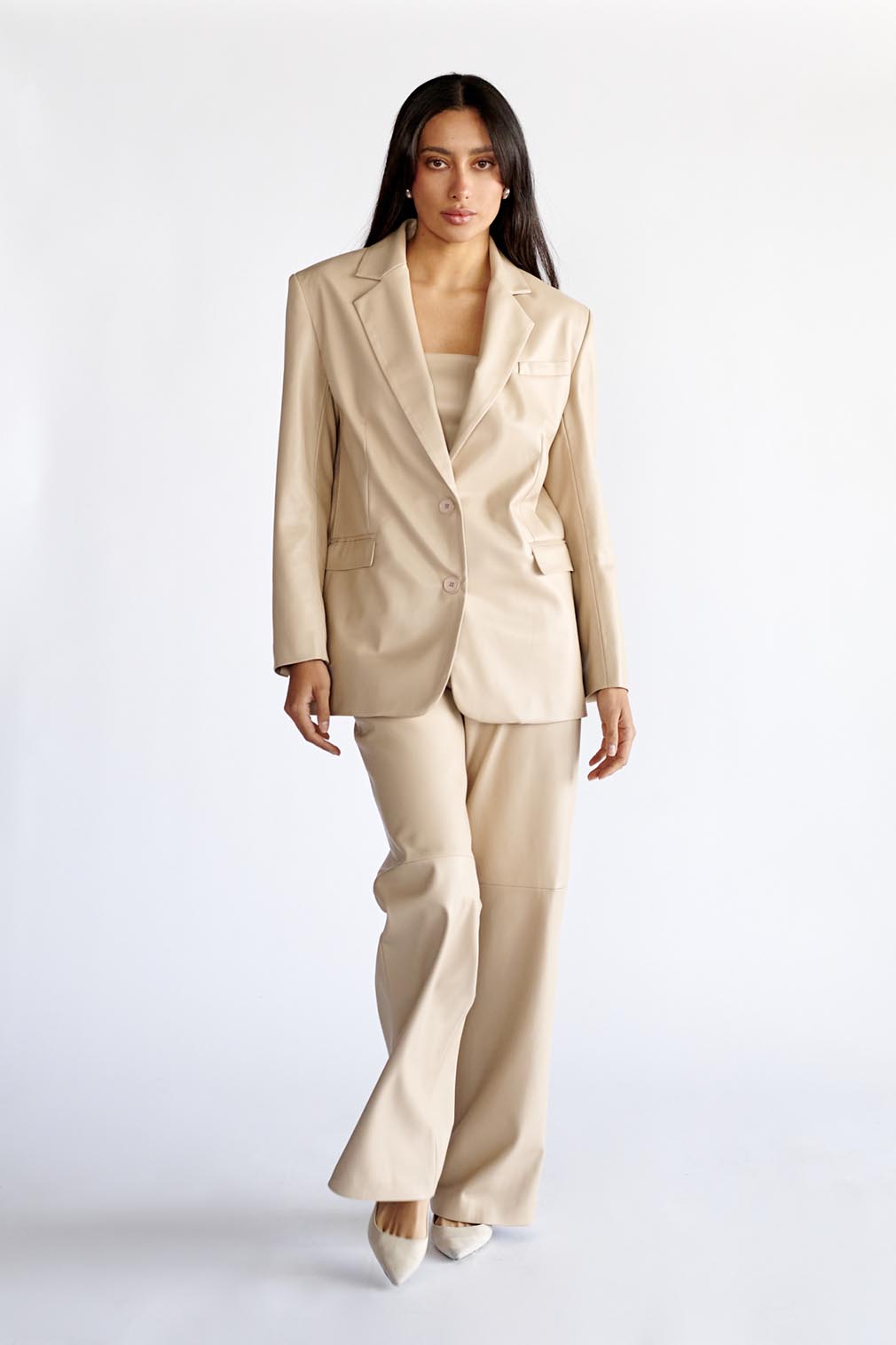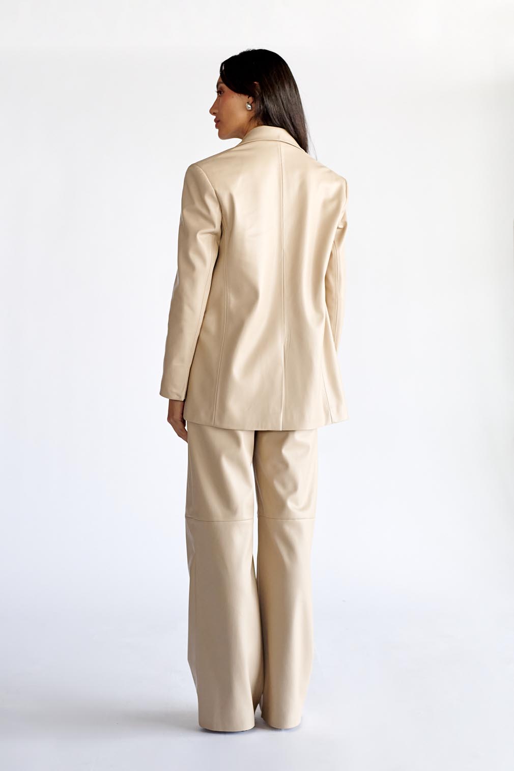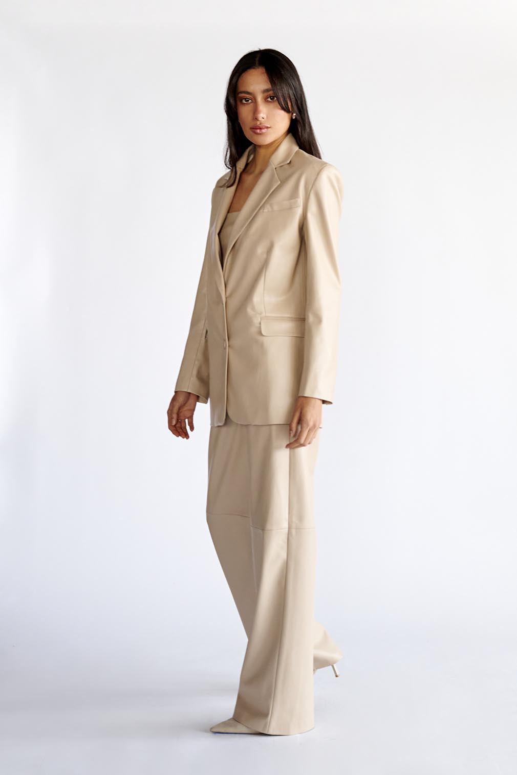 Saco de vestir de piel vegana con carteras y cruce sencillo.
