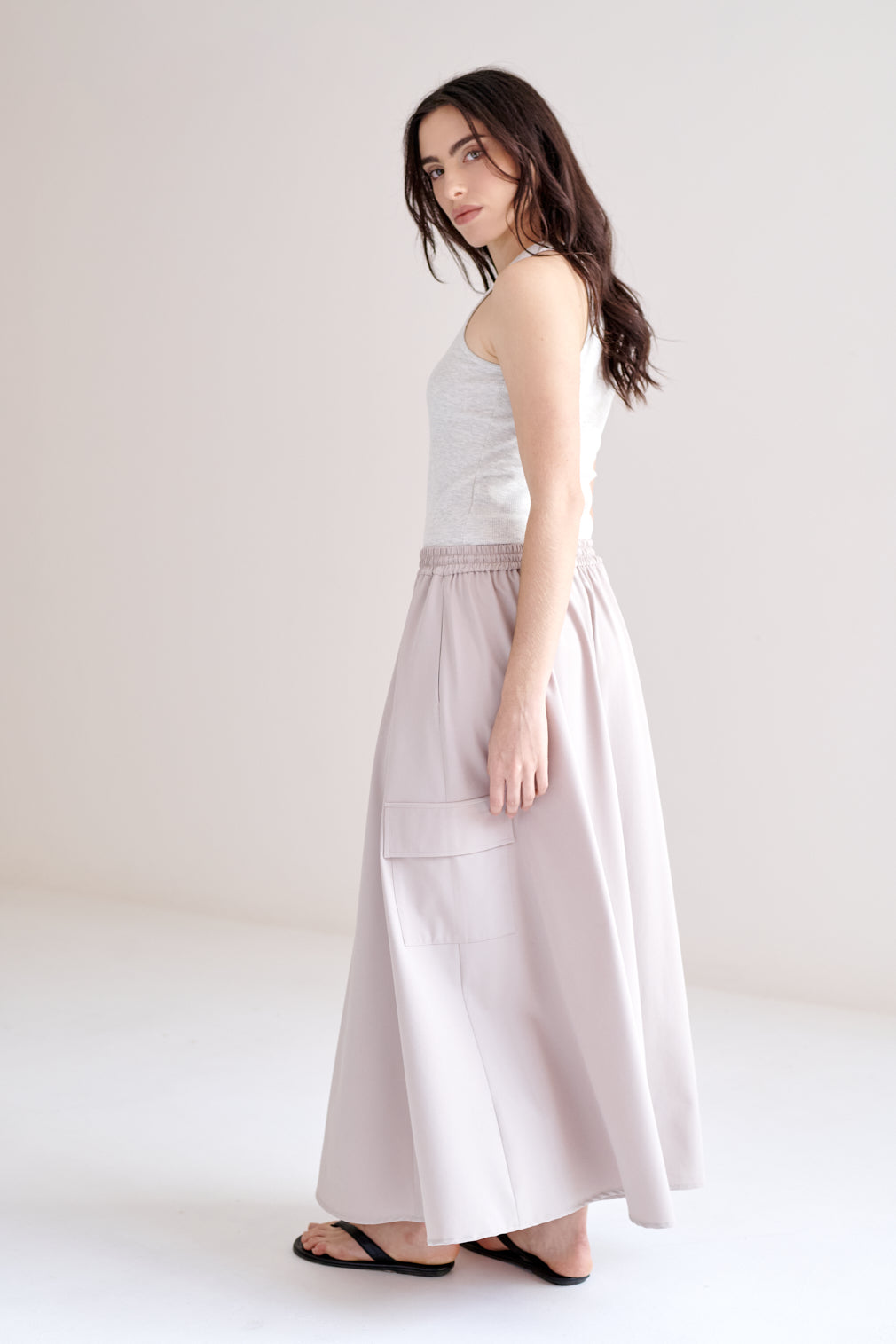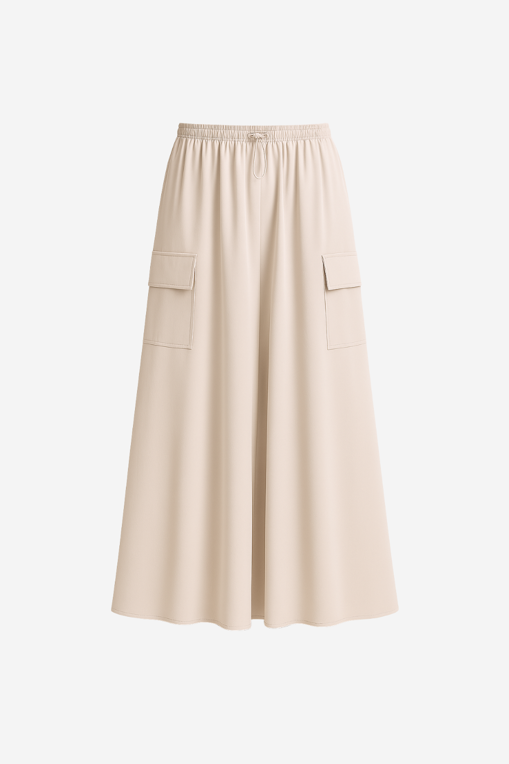 Falda midi tipo cargo con elástico y ajustador en la pretina