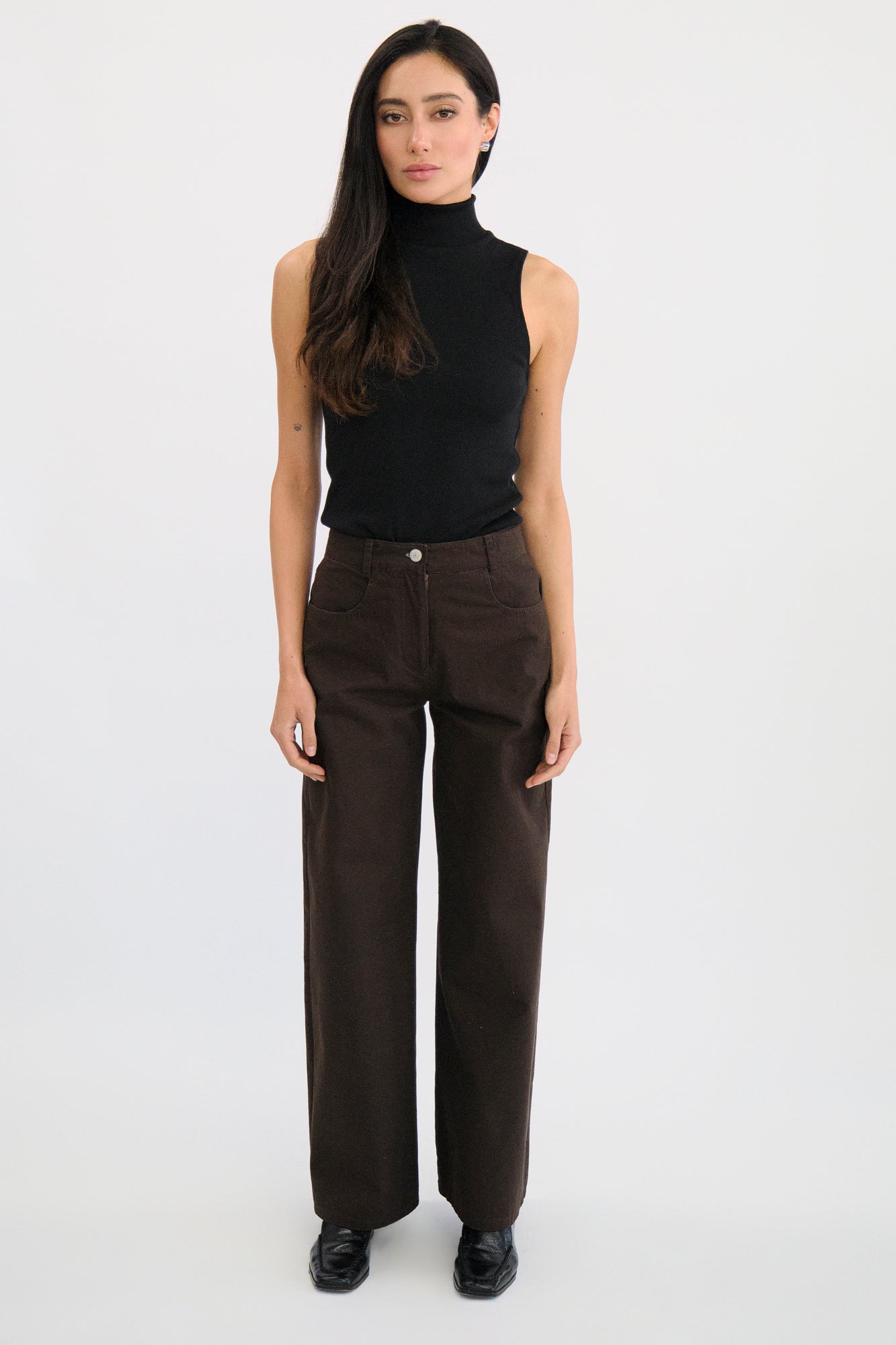 Pantalón de pierna ancha. Con construcción de pantalón vaquero.