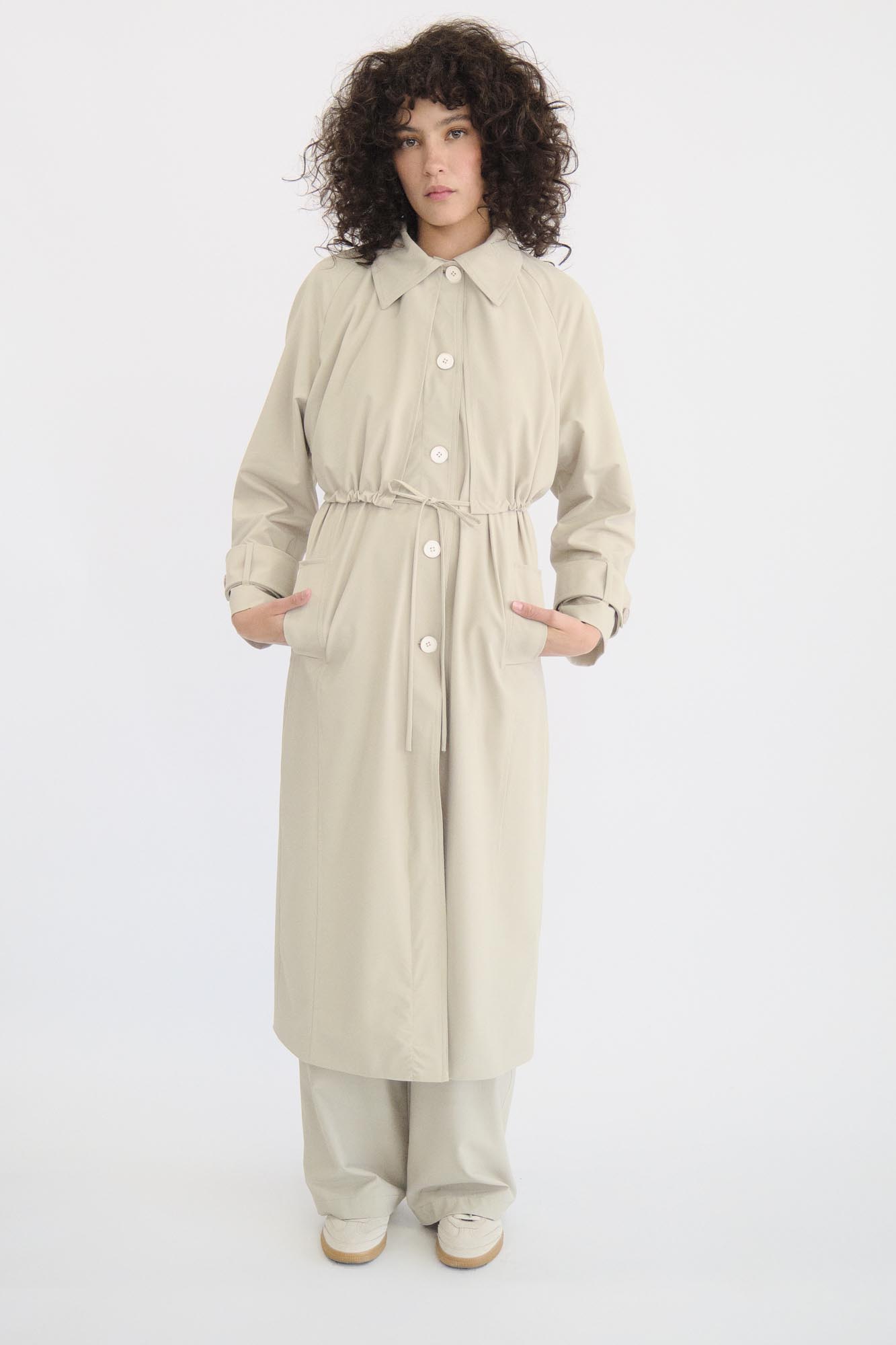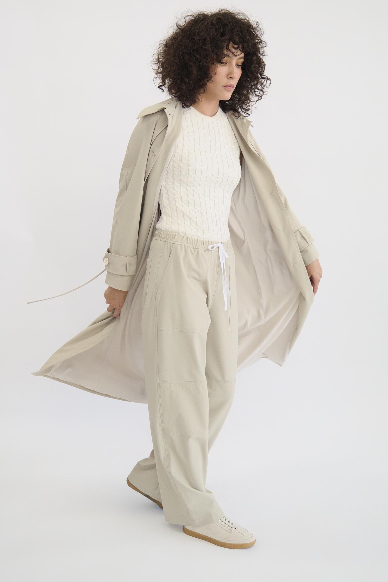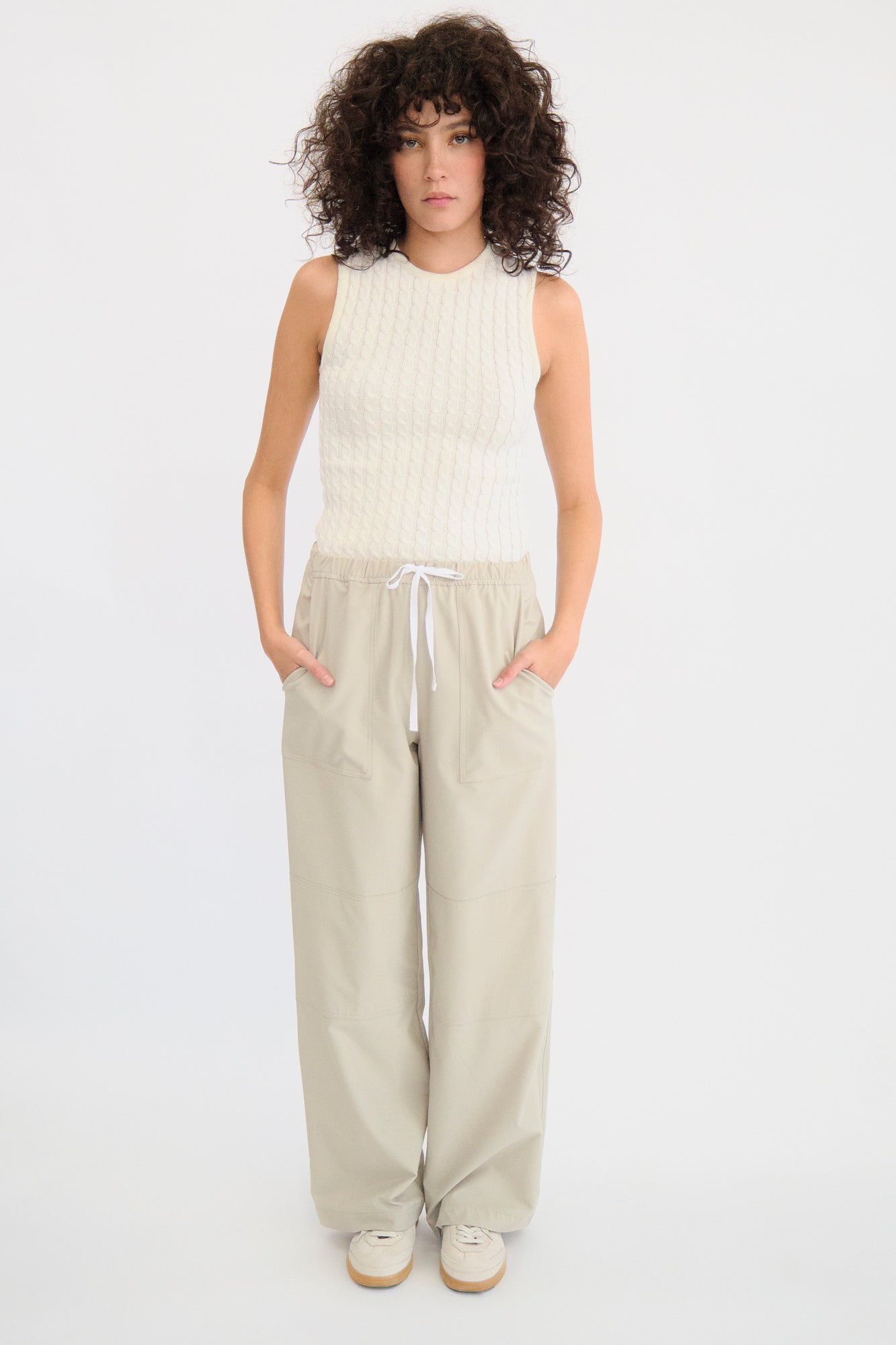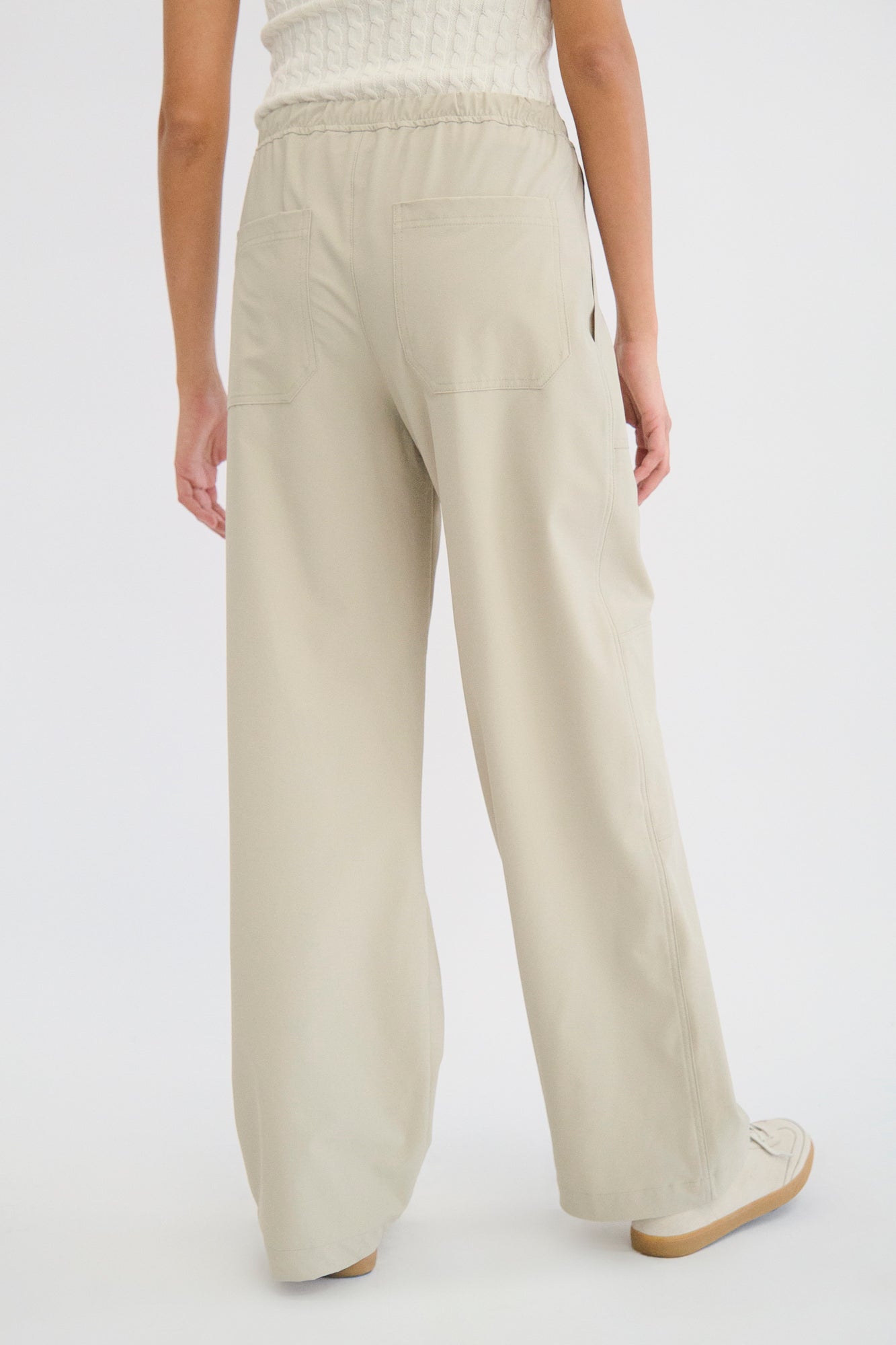 Pantalón fluido con jareta en contraste y bolsas de parche.