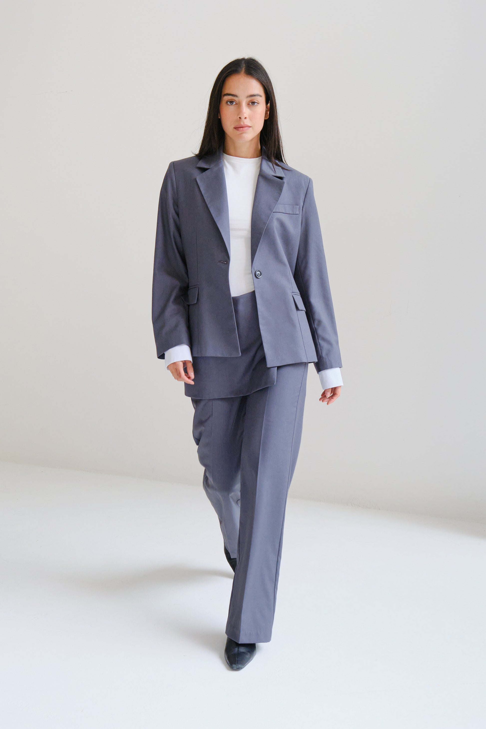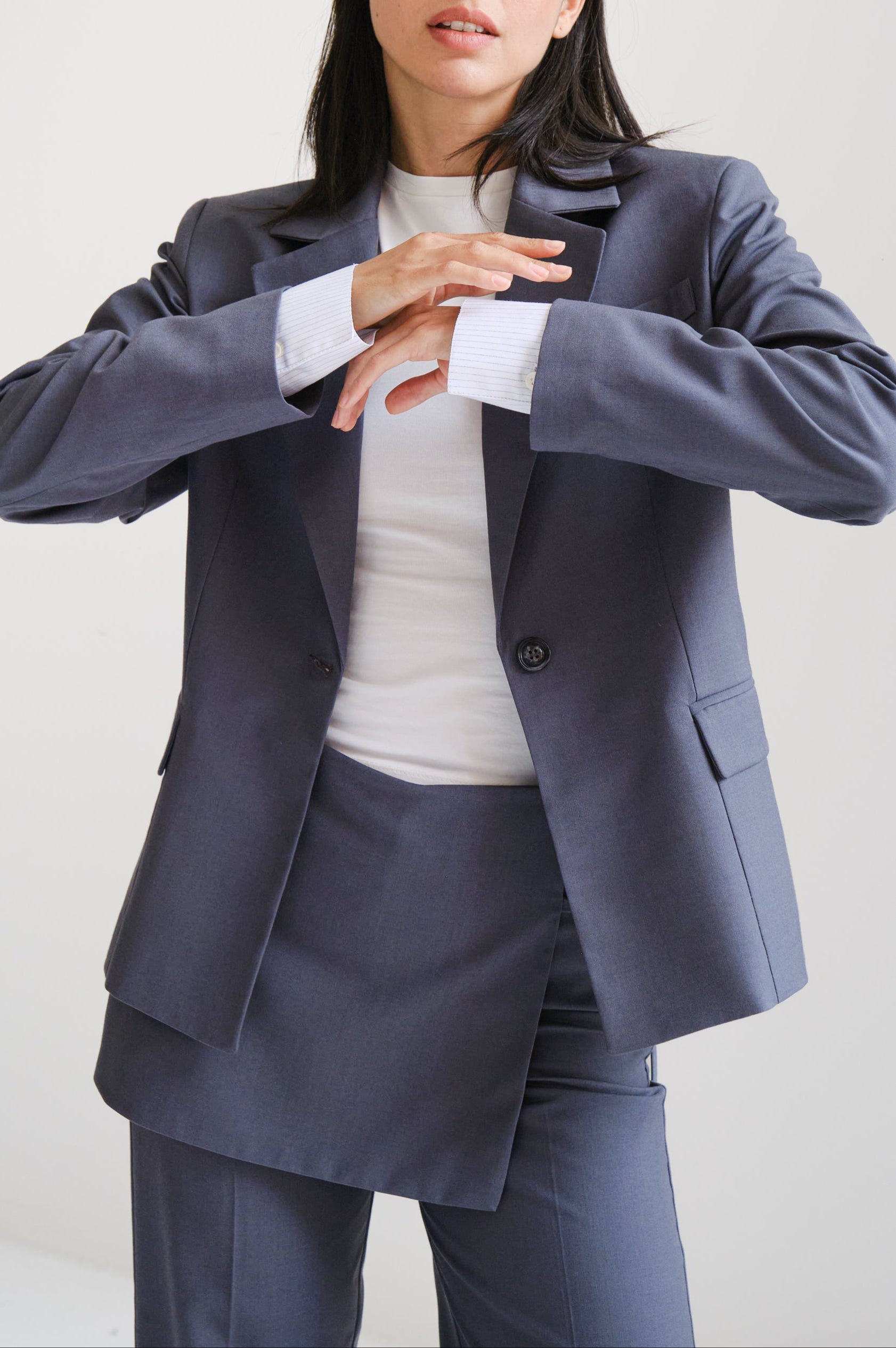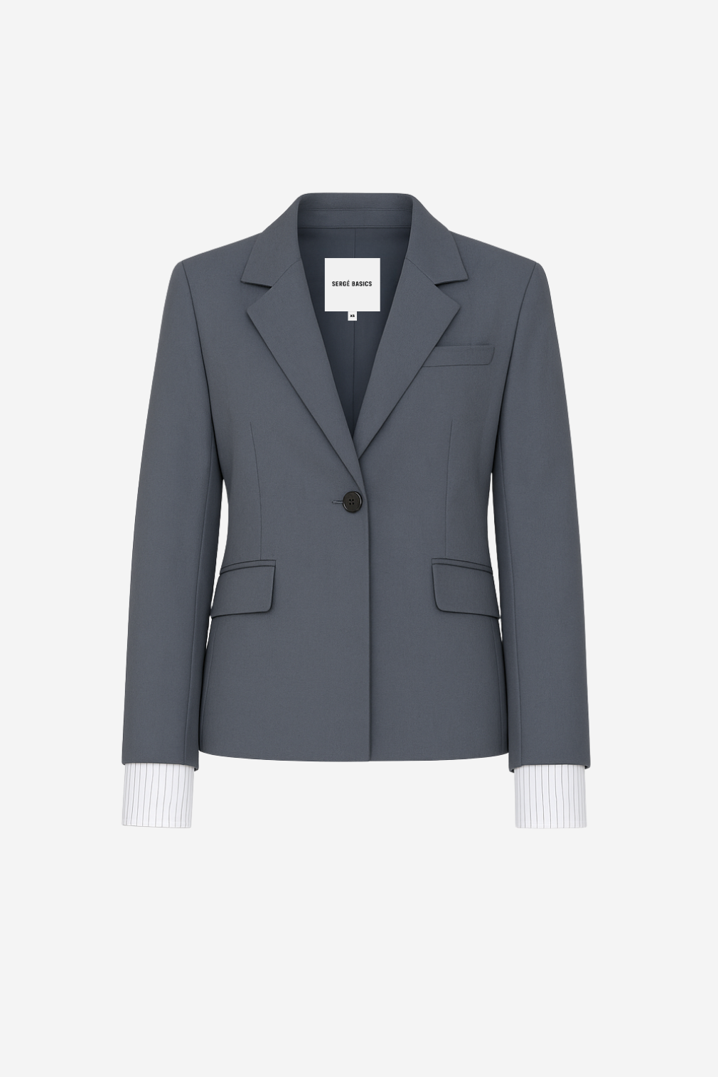 Saco de corte recto y sencillo. Manga larga extendida con puño estilo camisa de rayas.