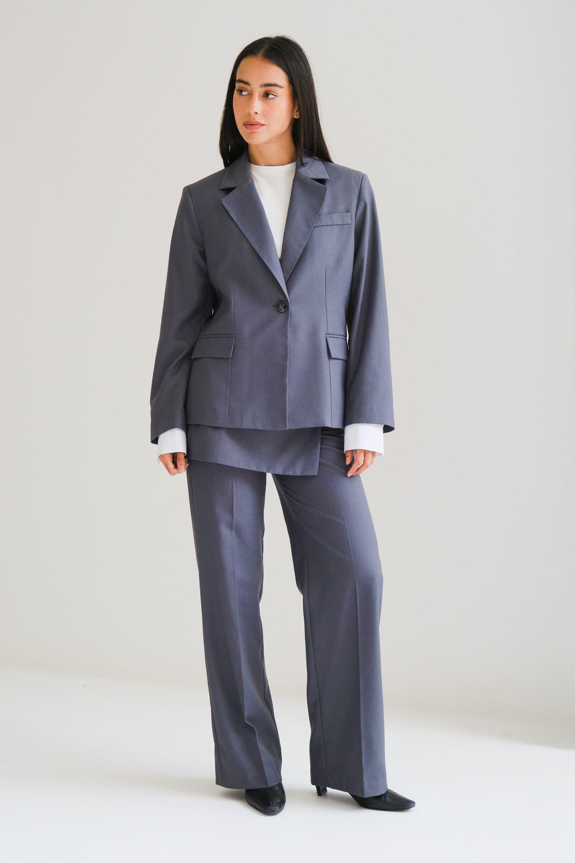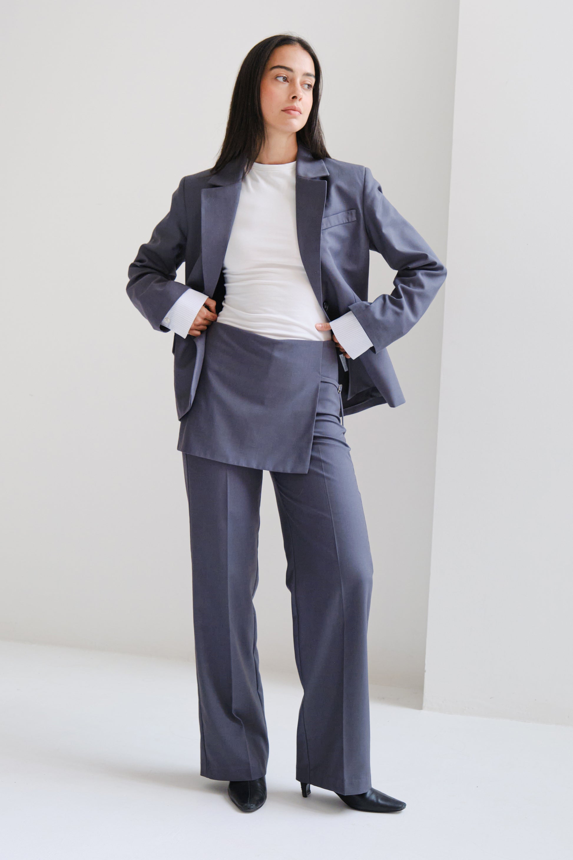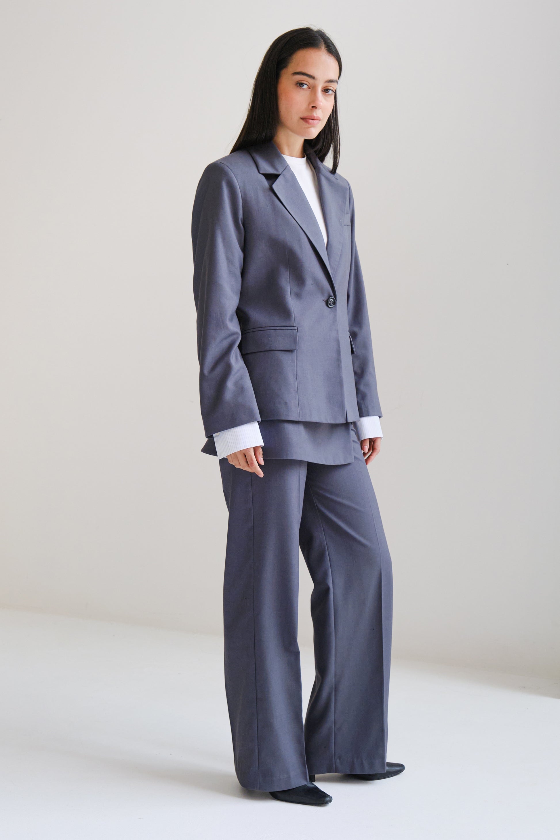 Saco de corte recto y sencillo. Manga larga extendida con puño estilo camisa de rayas.