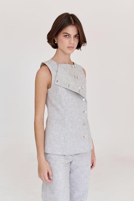 55% ALGODON 45% LINO Chaleco de vestir con doble cruce y doble hilera de botones...