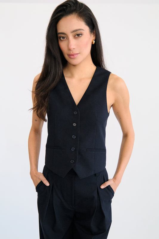 Chaleco de vestir fit relajado con ajustador en la parte trasera.
