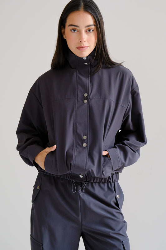 94% POLIESTER 6% ELASTANO Chamarra de cuello alto con resorte en ruedo, bolsillos laterales y...