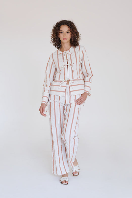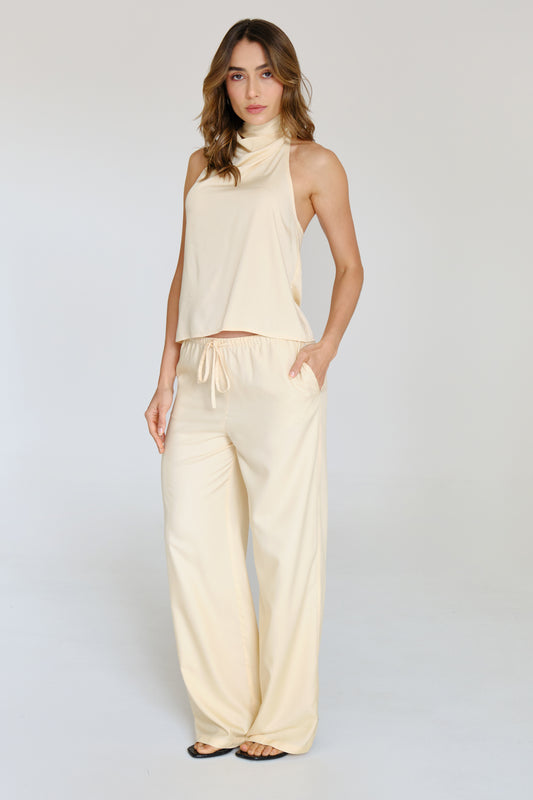Pantalón fluido afelpado con resorte en cintura y jareta.