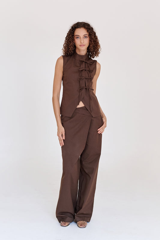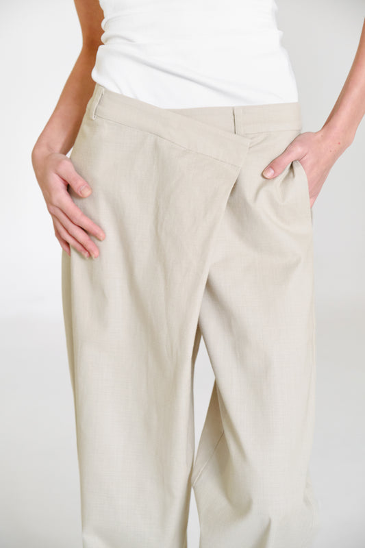 100% ALGODÓN Pantalón con pretina asimétrica que permite ajustarlo a la cintura o a la...