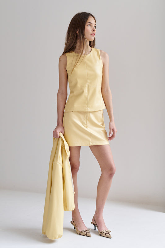 Recubrimiento: Poliuretano Base: 100% POLIÉSTER Falda midi de piel vegana. Corte recto y tiro alto...