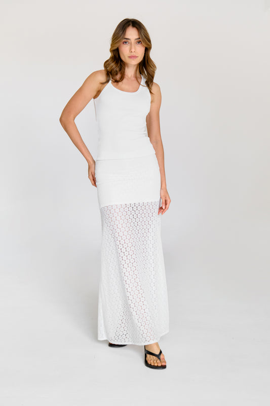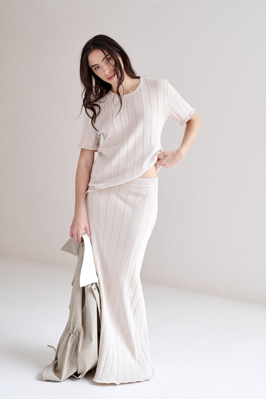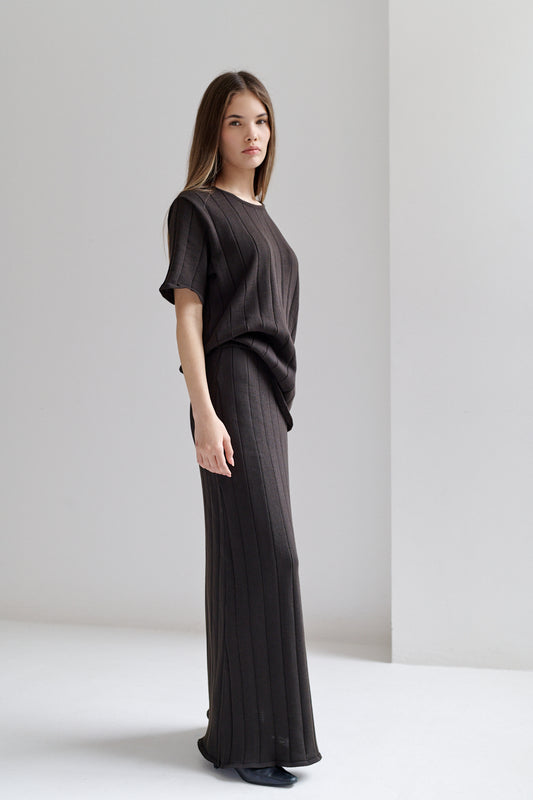 falda maxi tejida de tiro alto