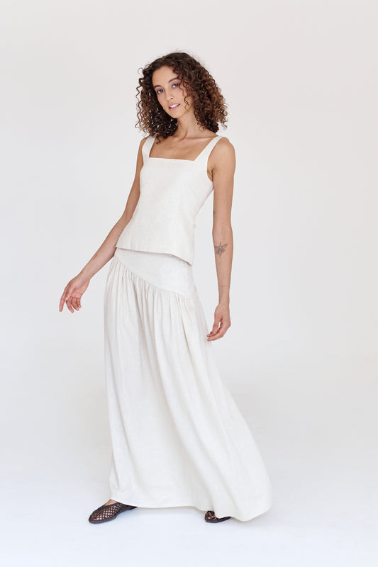 70% VISCOSA 30% LINO Falda larga con corte asimétrico en la cadera que acentúa la...