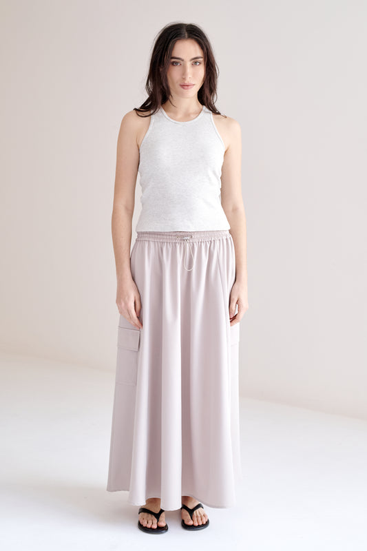 Falda midi tipo cargo con elástico y ajustador en la pretina