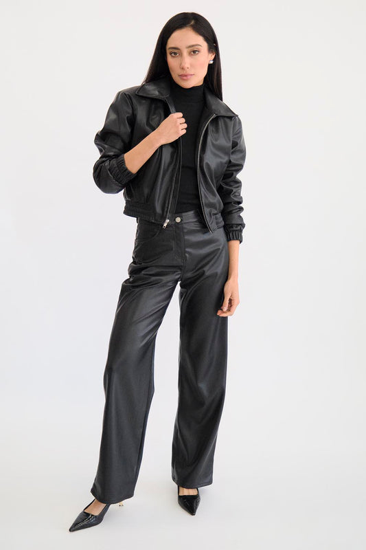 Pantalón estilo vaquero recto de piel vegana.
