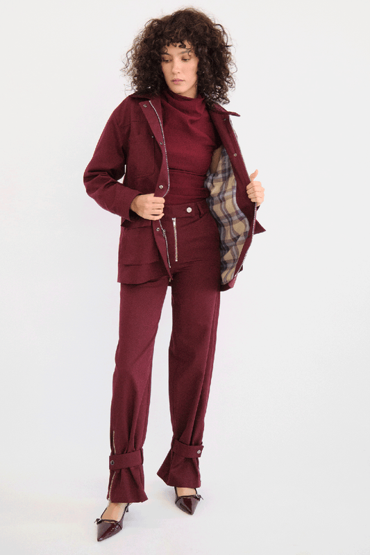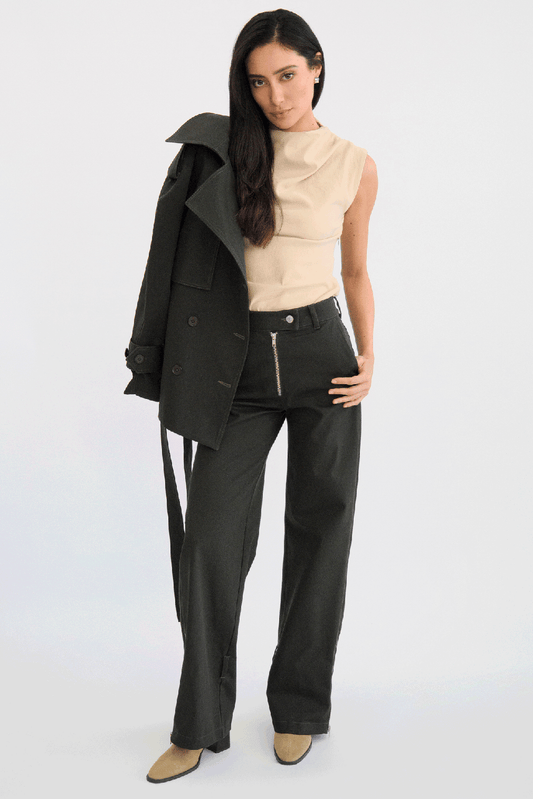 Pantalón recto con cierres y ajustadores en tobillos. SI ESTAS ENTRE TALLAS TE RECOMENDAMOS AUMENTAR...