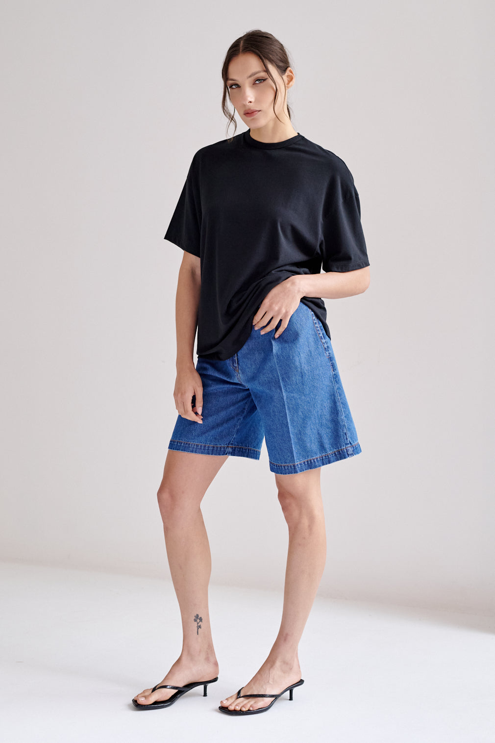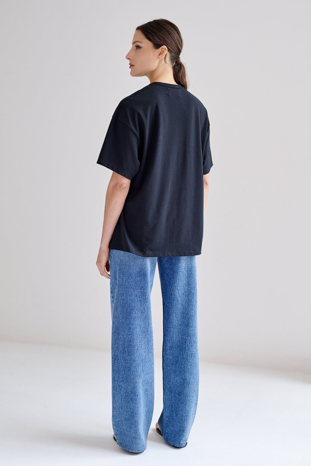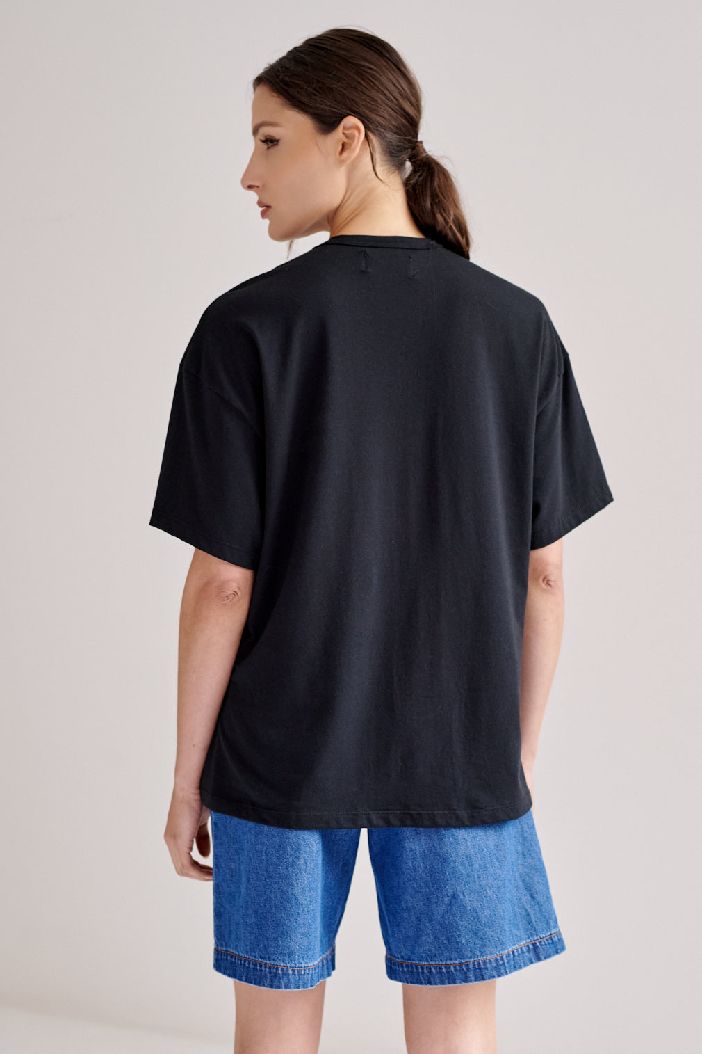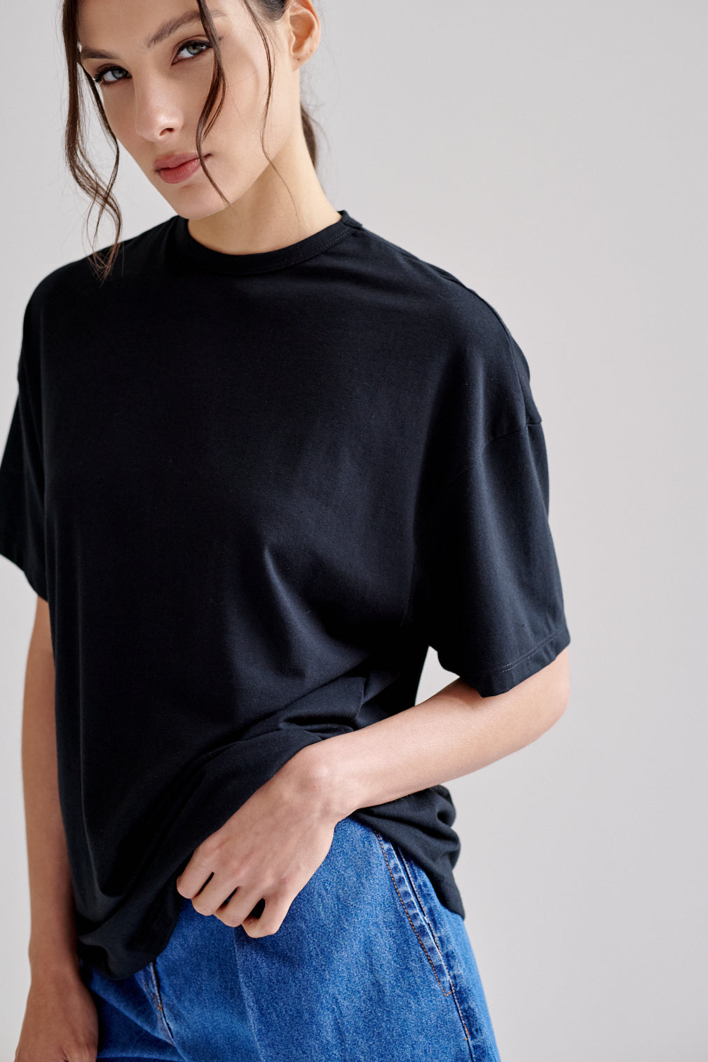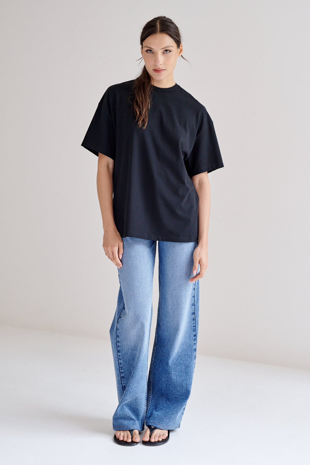 T-shirt con rib en cuello, fit oversize y manga hasta el codo