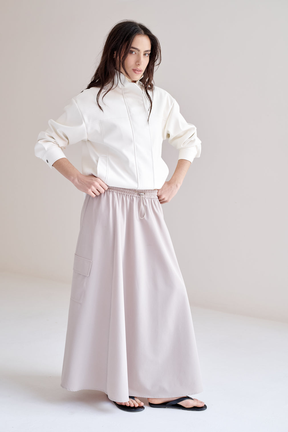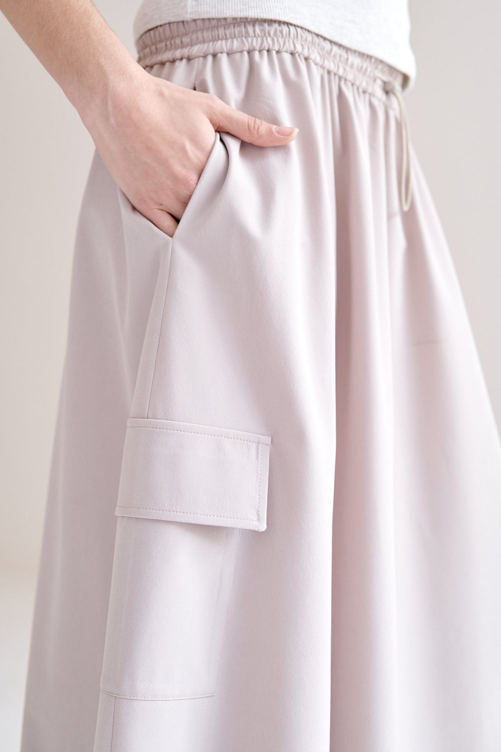 Falda midi tipo cargo con elástico y ajustador en la pretina