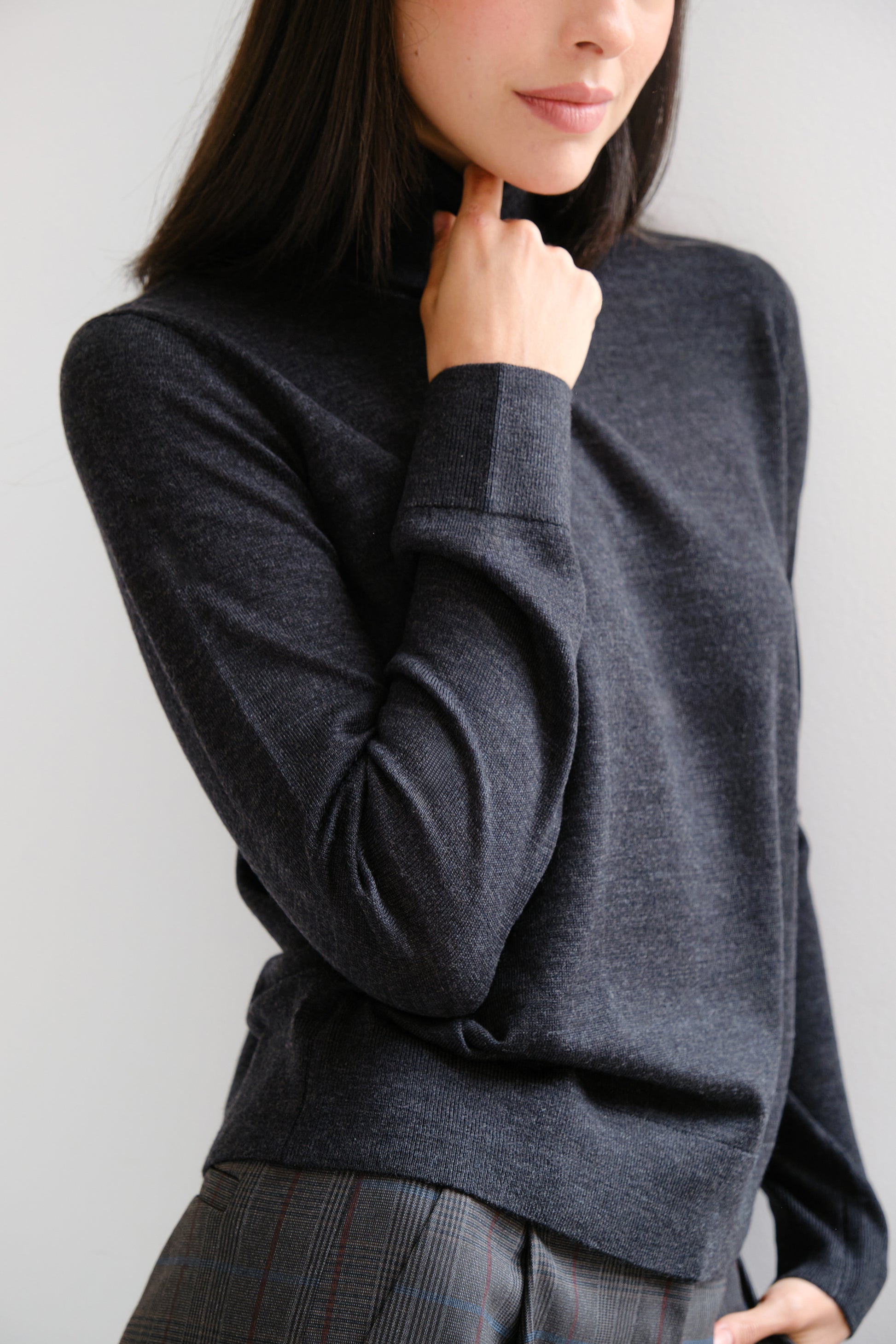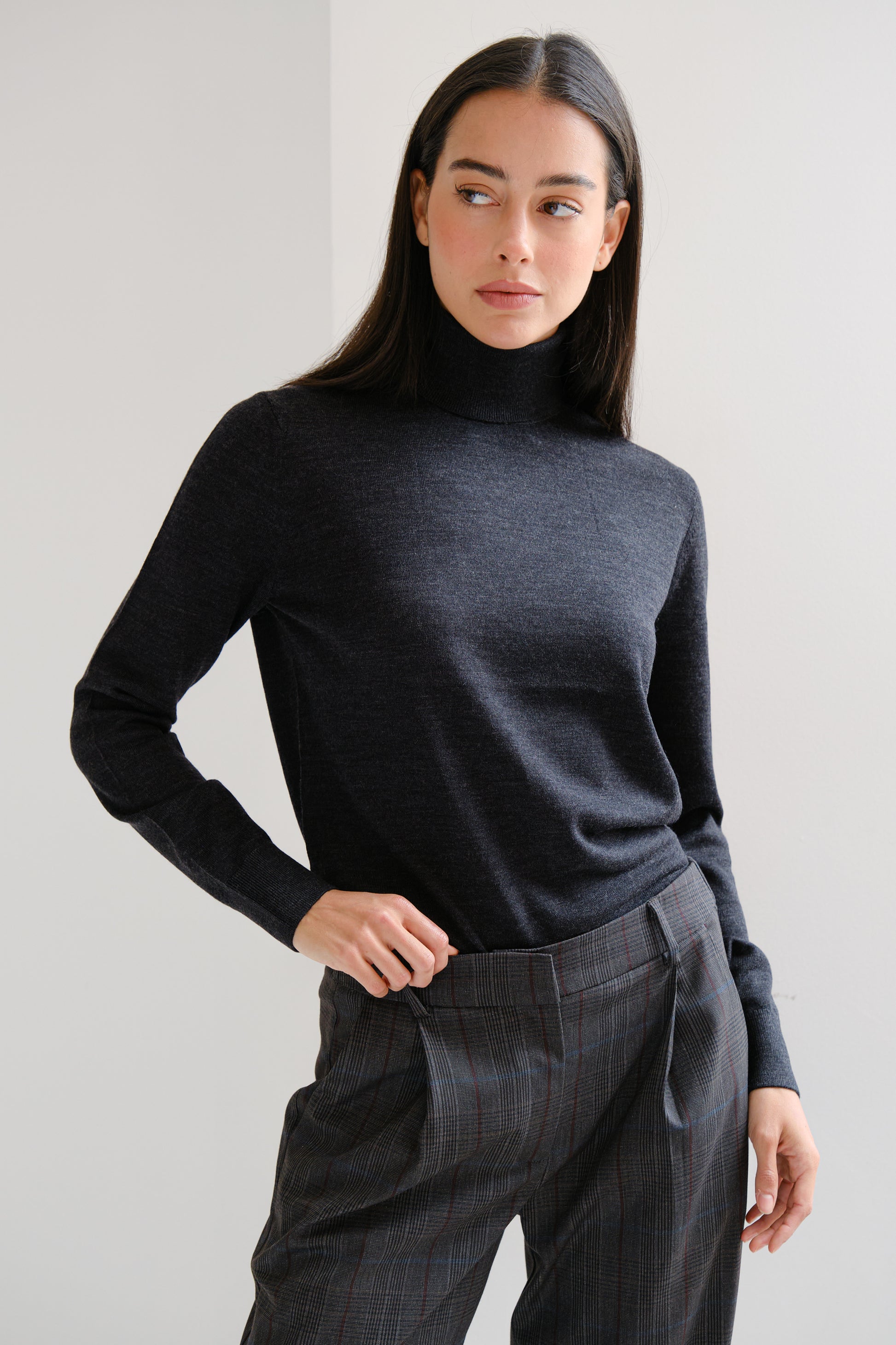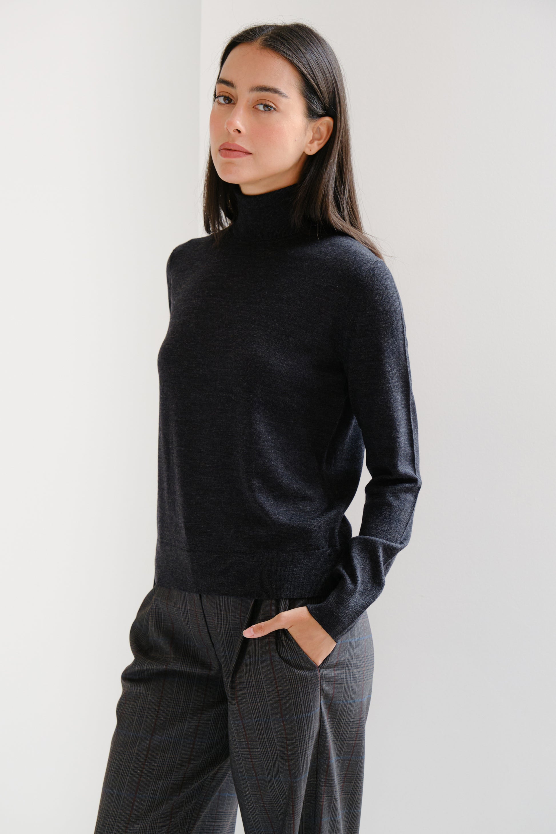 ⁠Suéter tipo cuello de tortuga con manga larga, de la ultrafine merino.