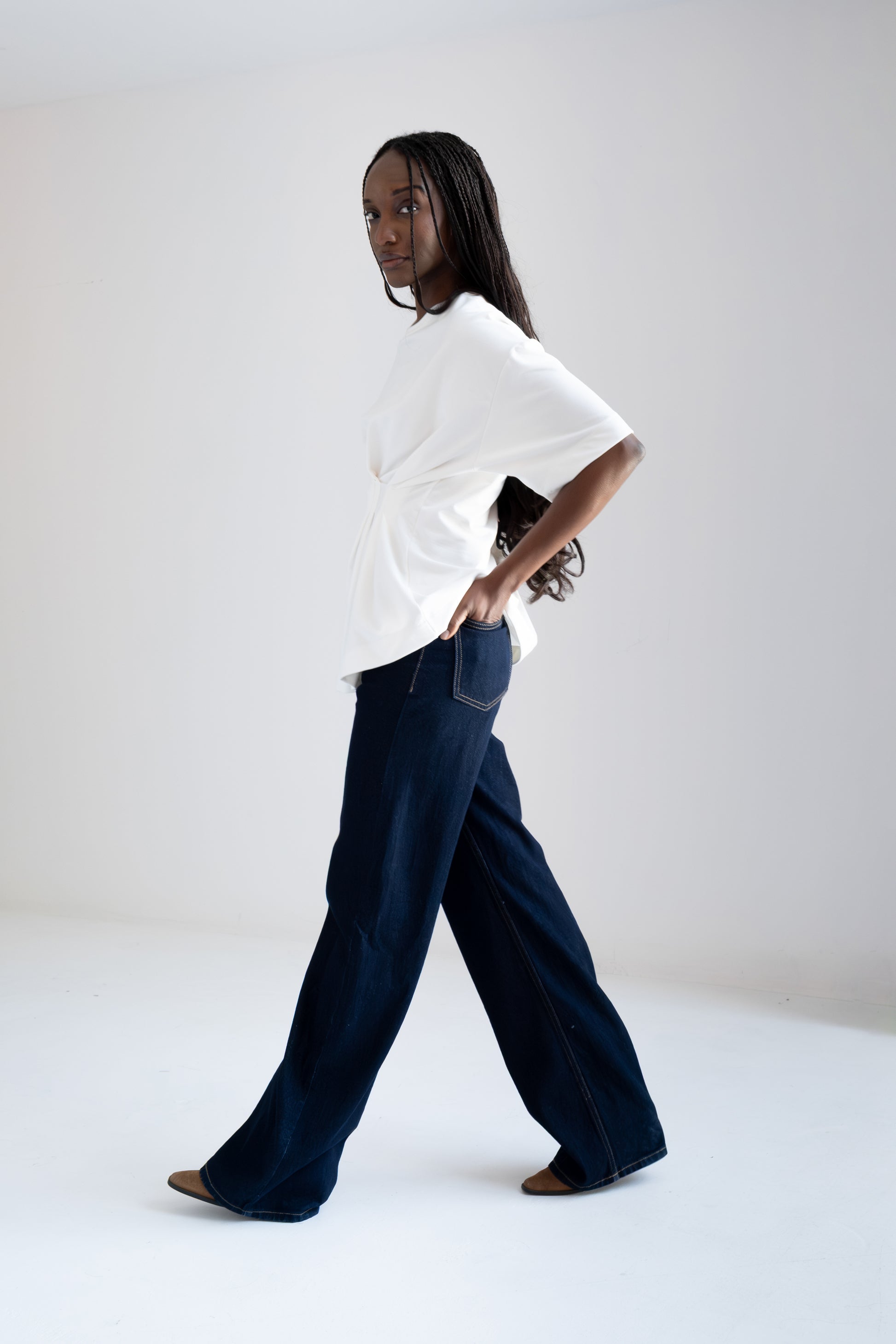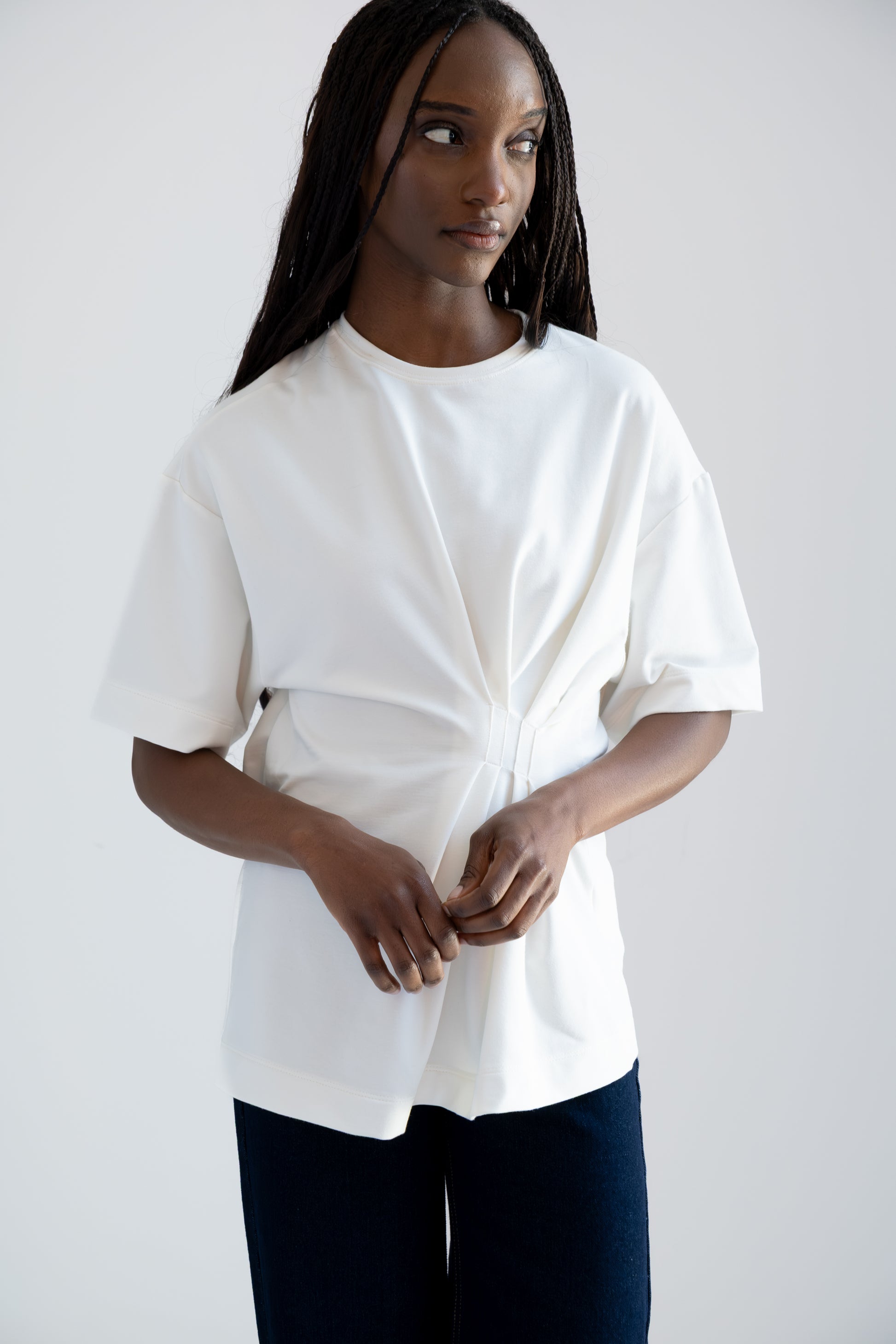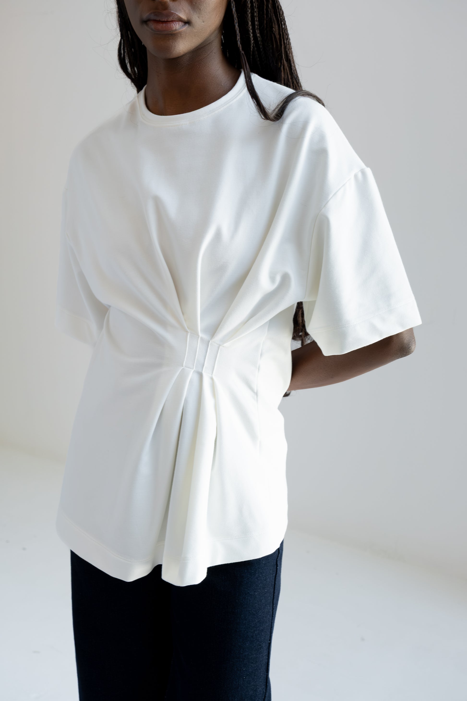 T-shirt oversized asimétrica con pliegues en costado