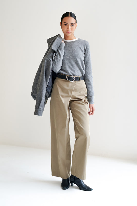 66% ALGODÓN 34% TENCEL Pantalón de tiro medio con pierna amplia estructurada, pretina firme con...