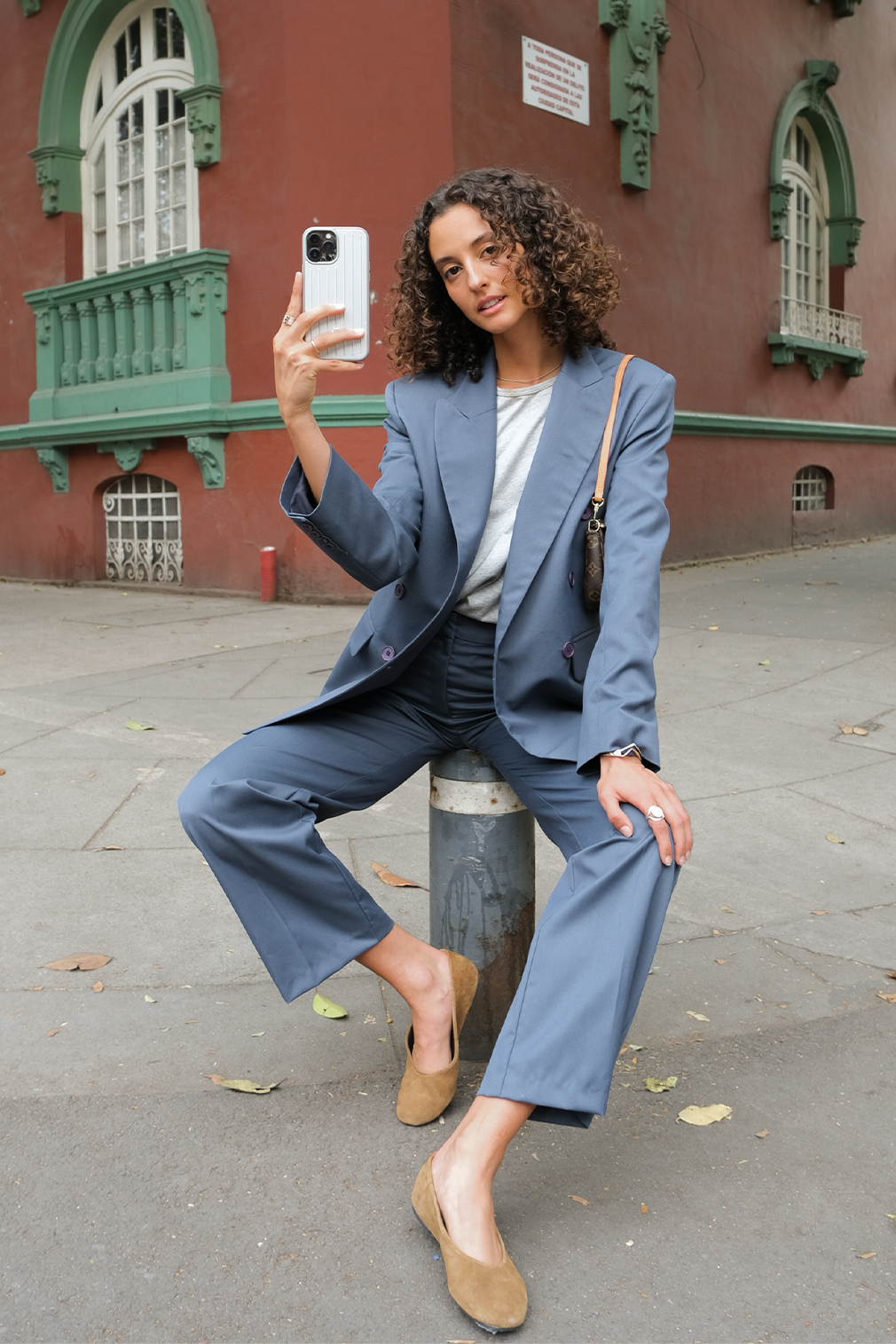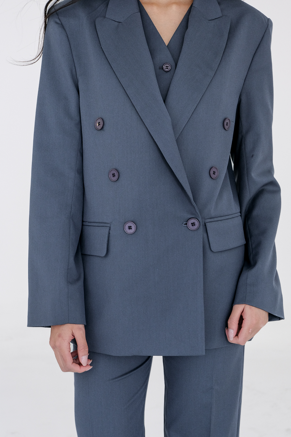 Double-breasted suit jacket.