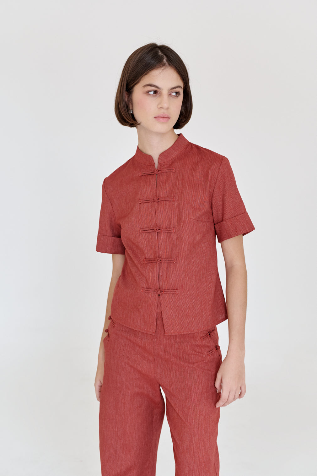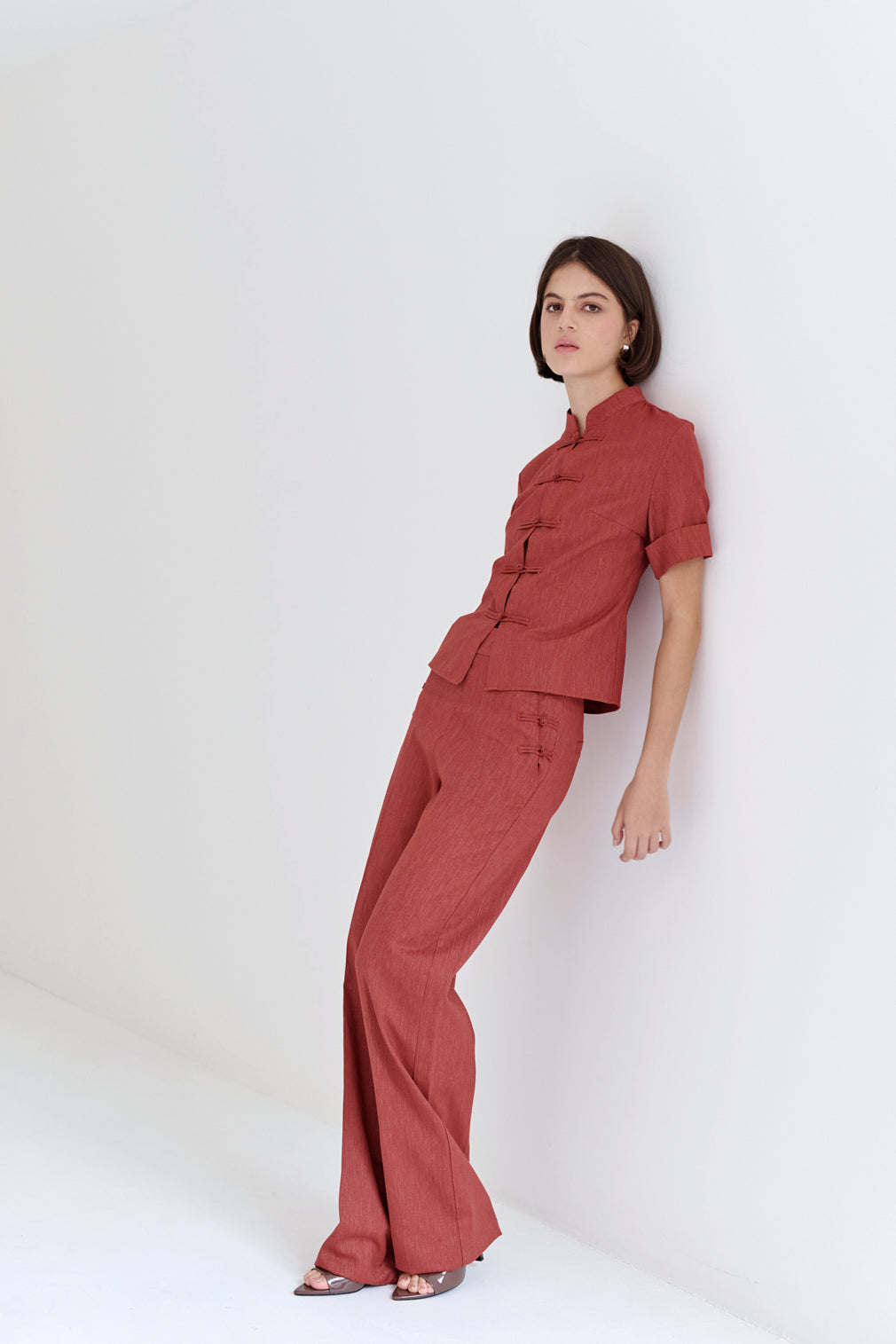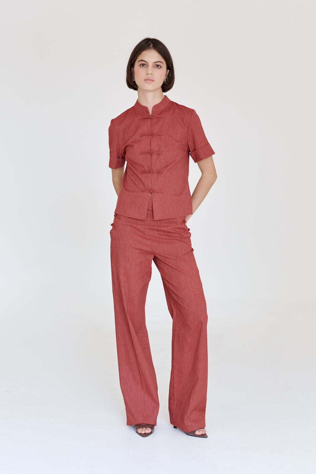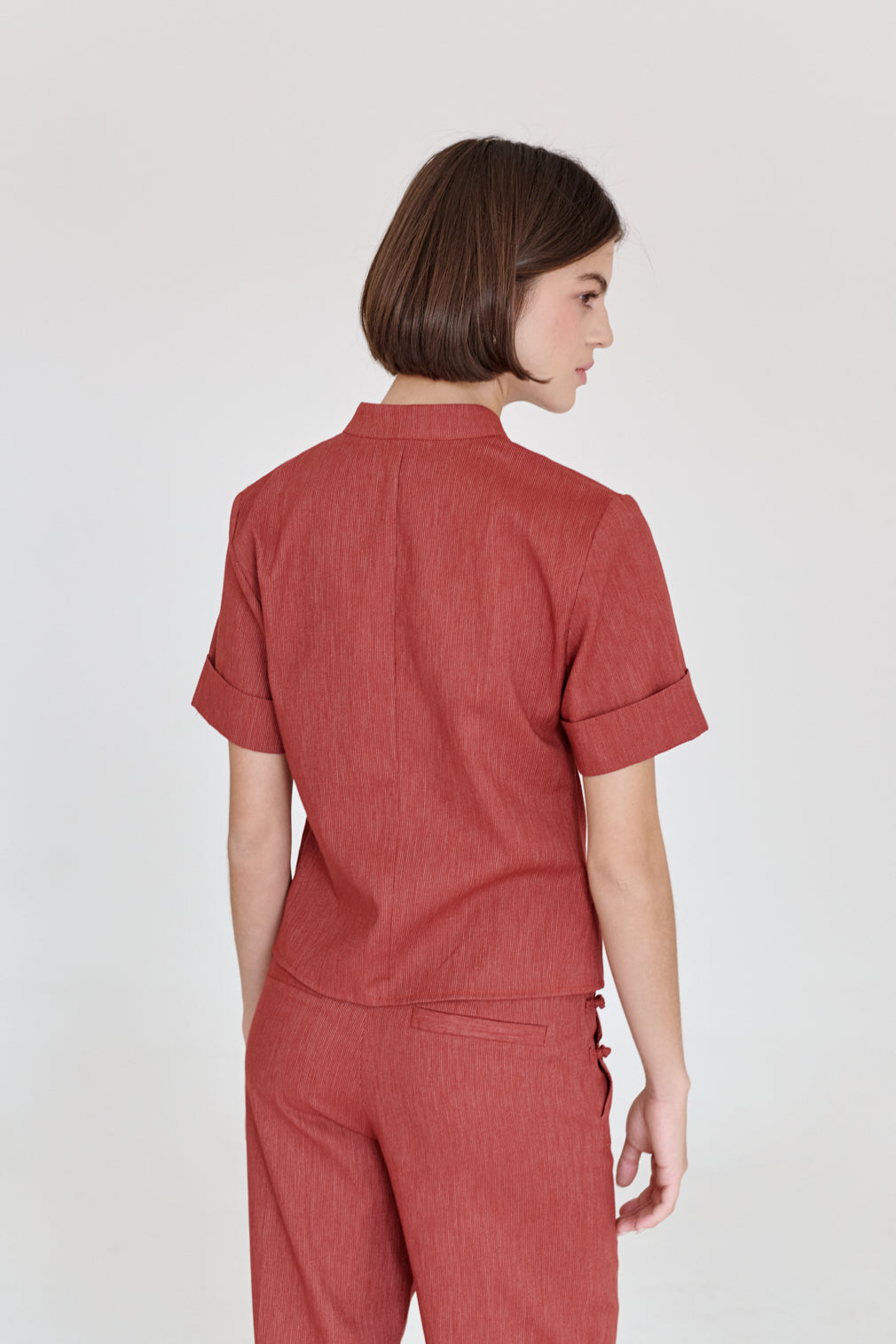 Short-sleeved shirt with a boxy cut. Fitted at the front with lacing details.