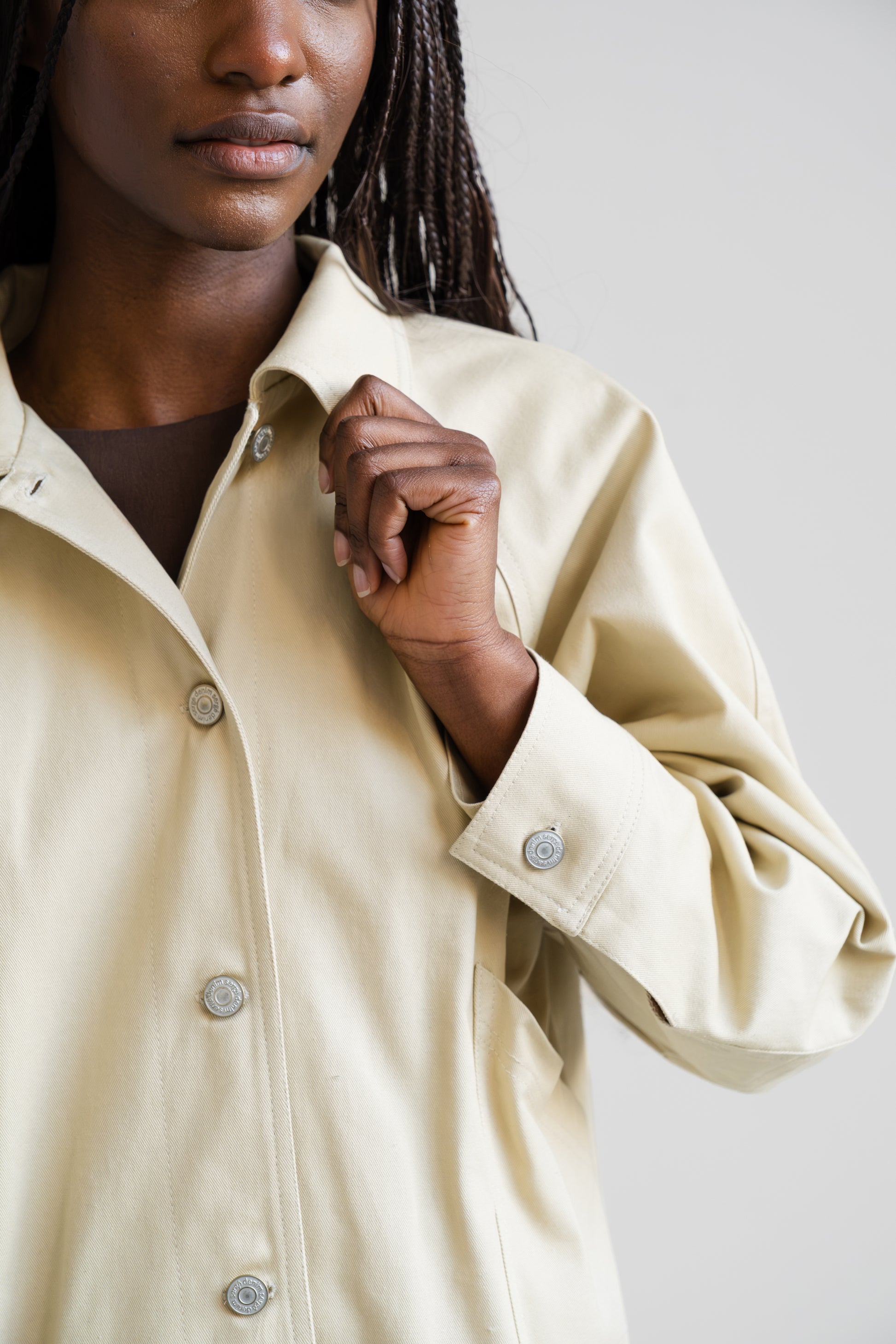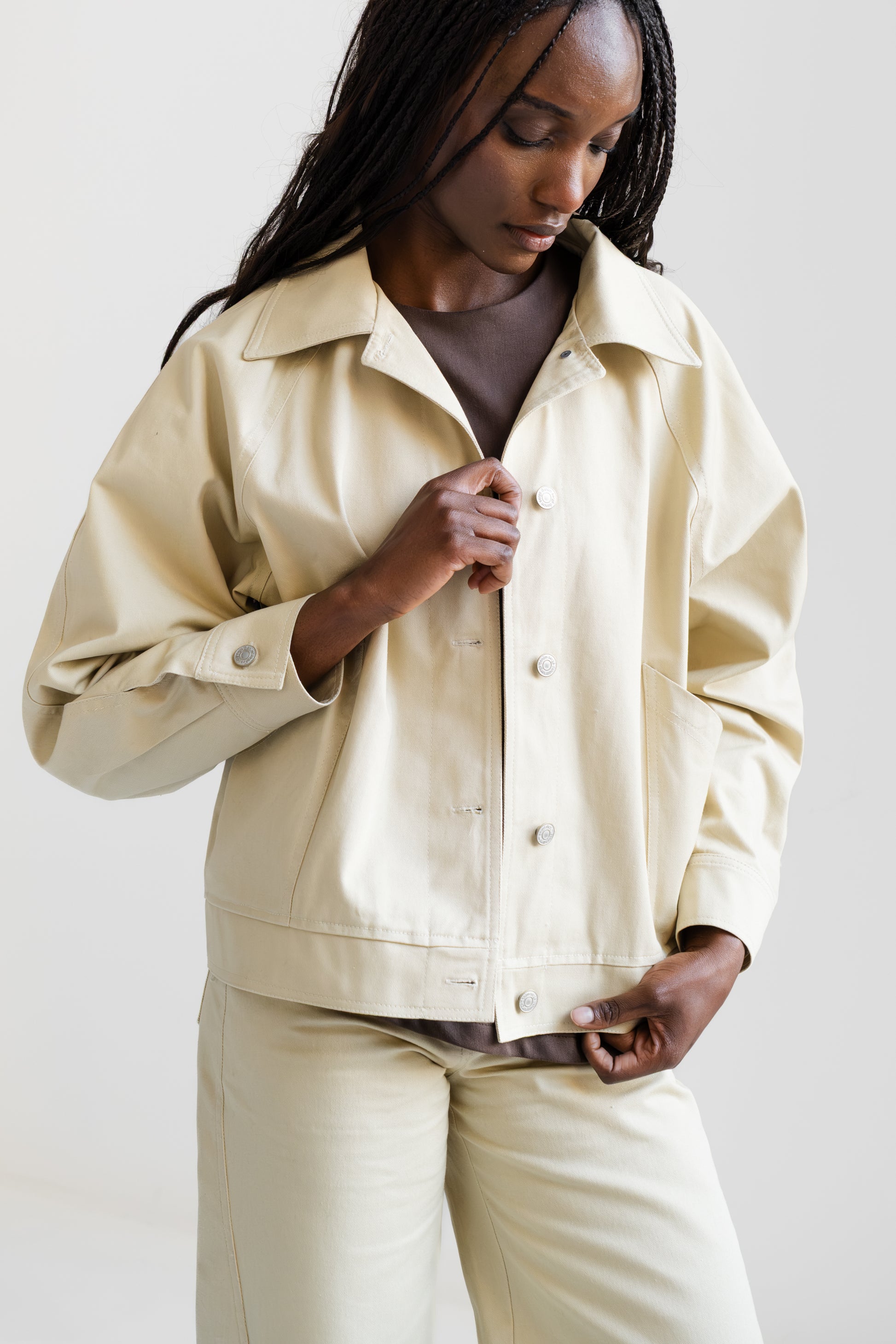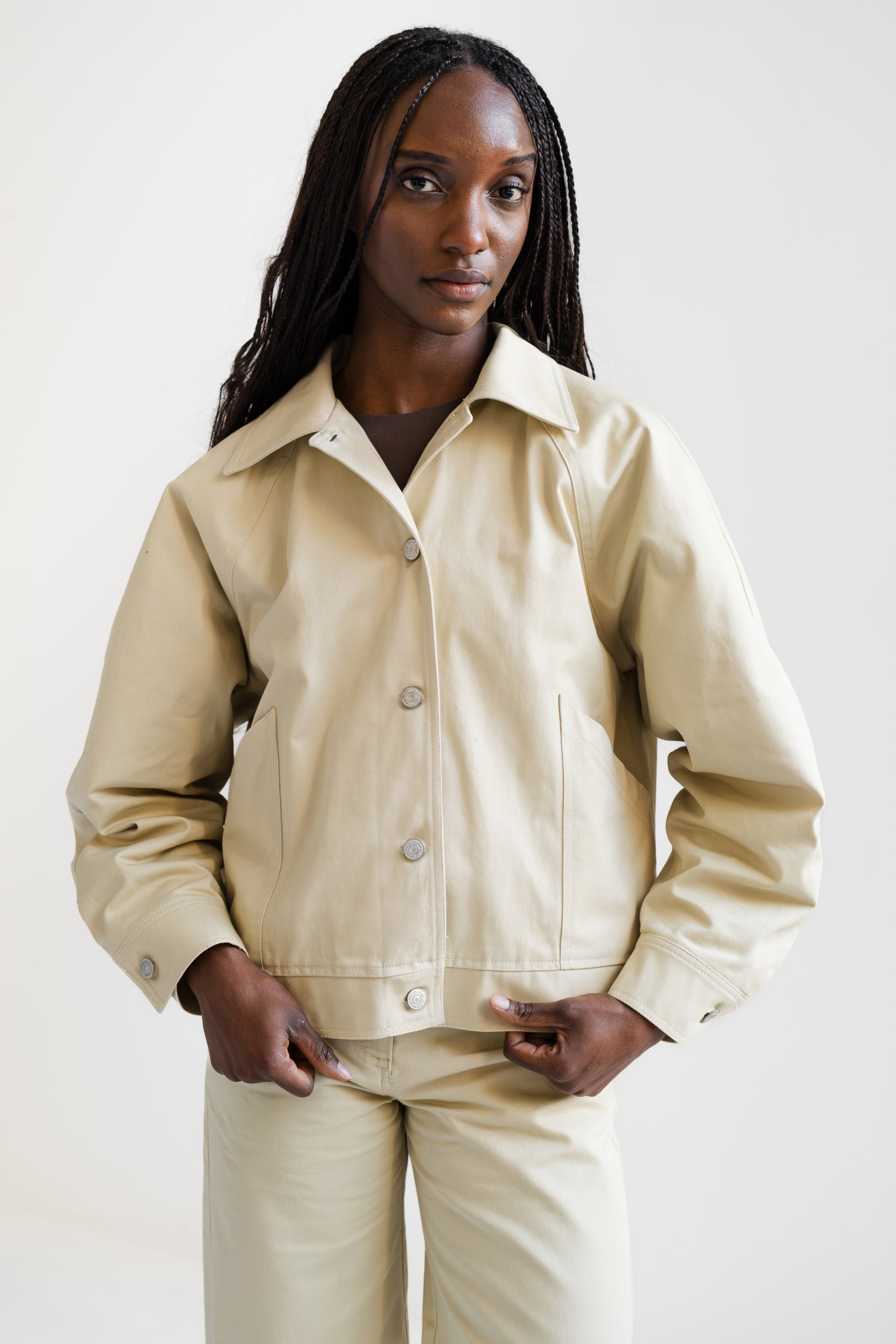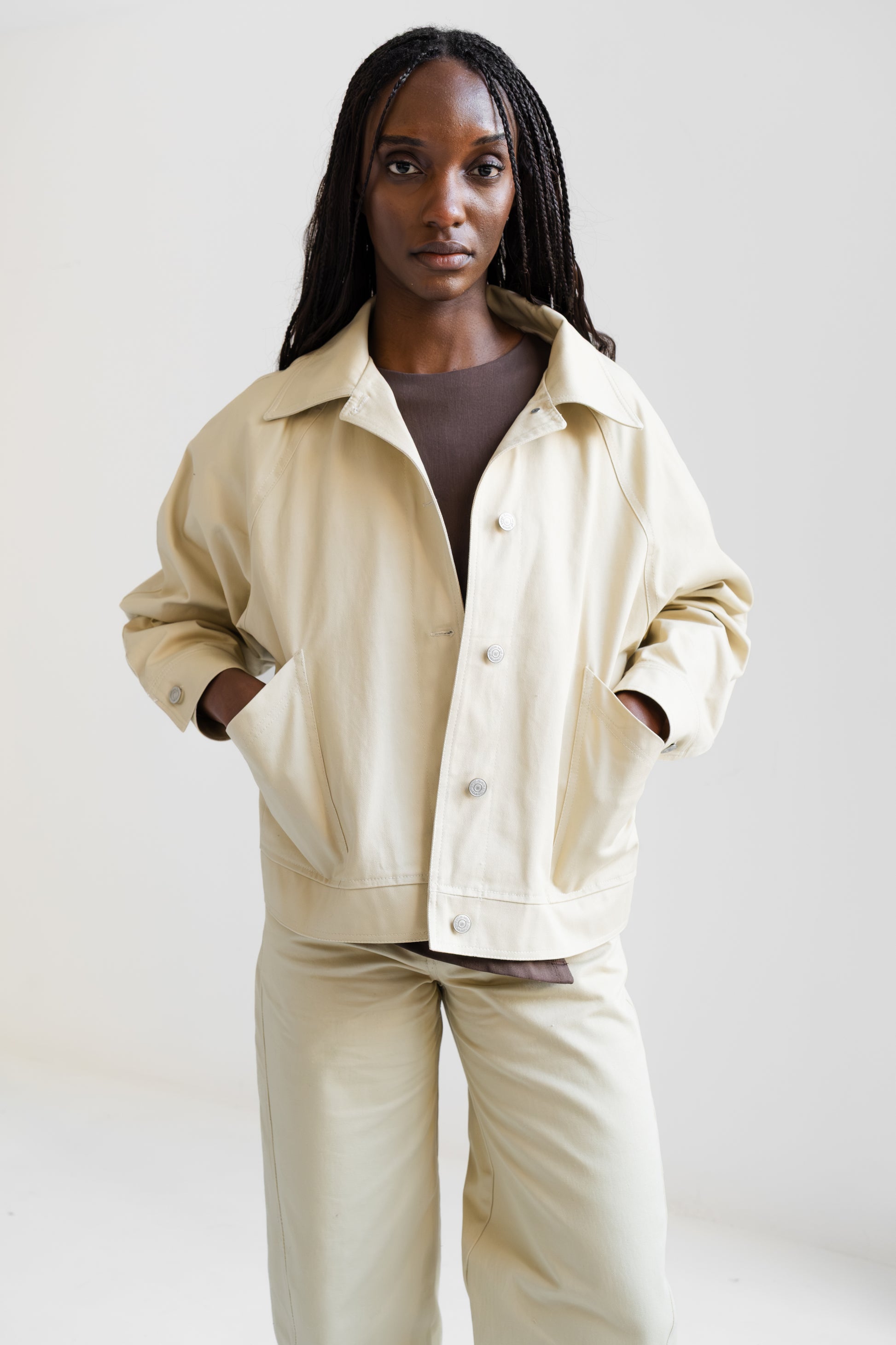 Chamarra de manga raglán con bolsillos de parche frontales.