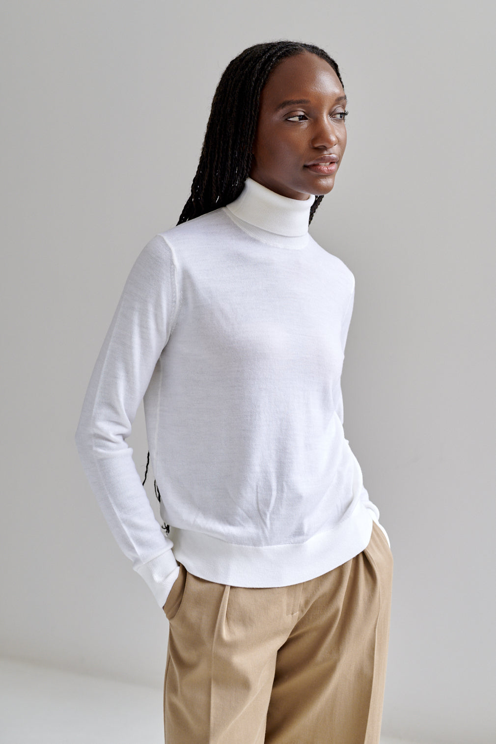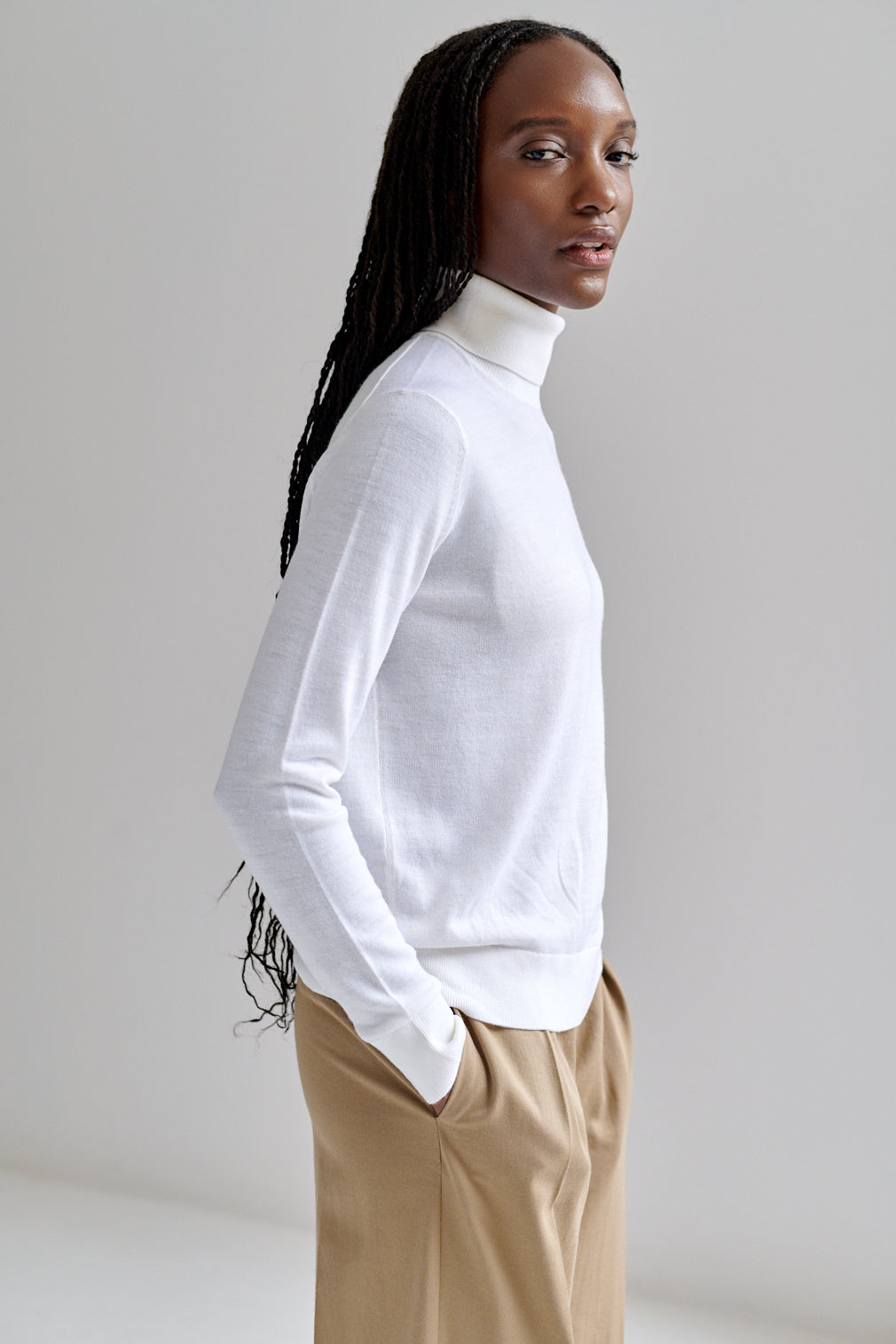 ⁠Suéter tipo cuello de tortuga con manga larga, de la ultrafine merino.