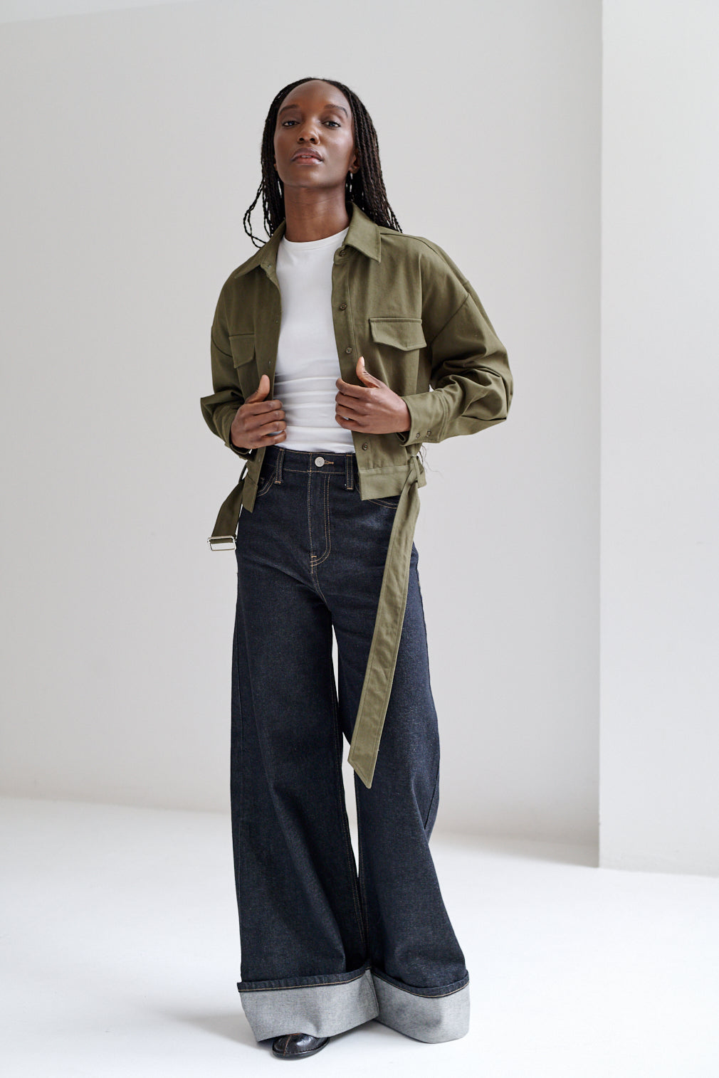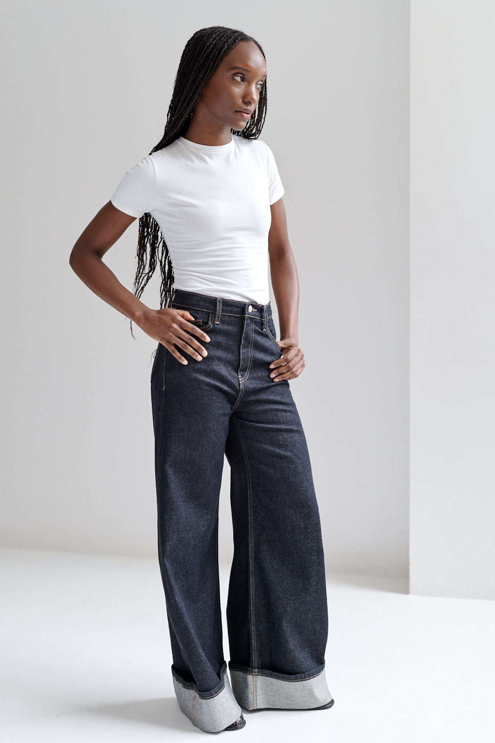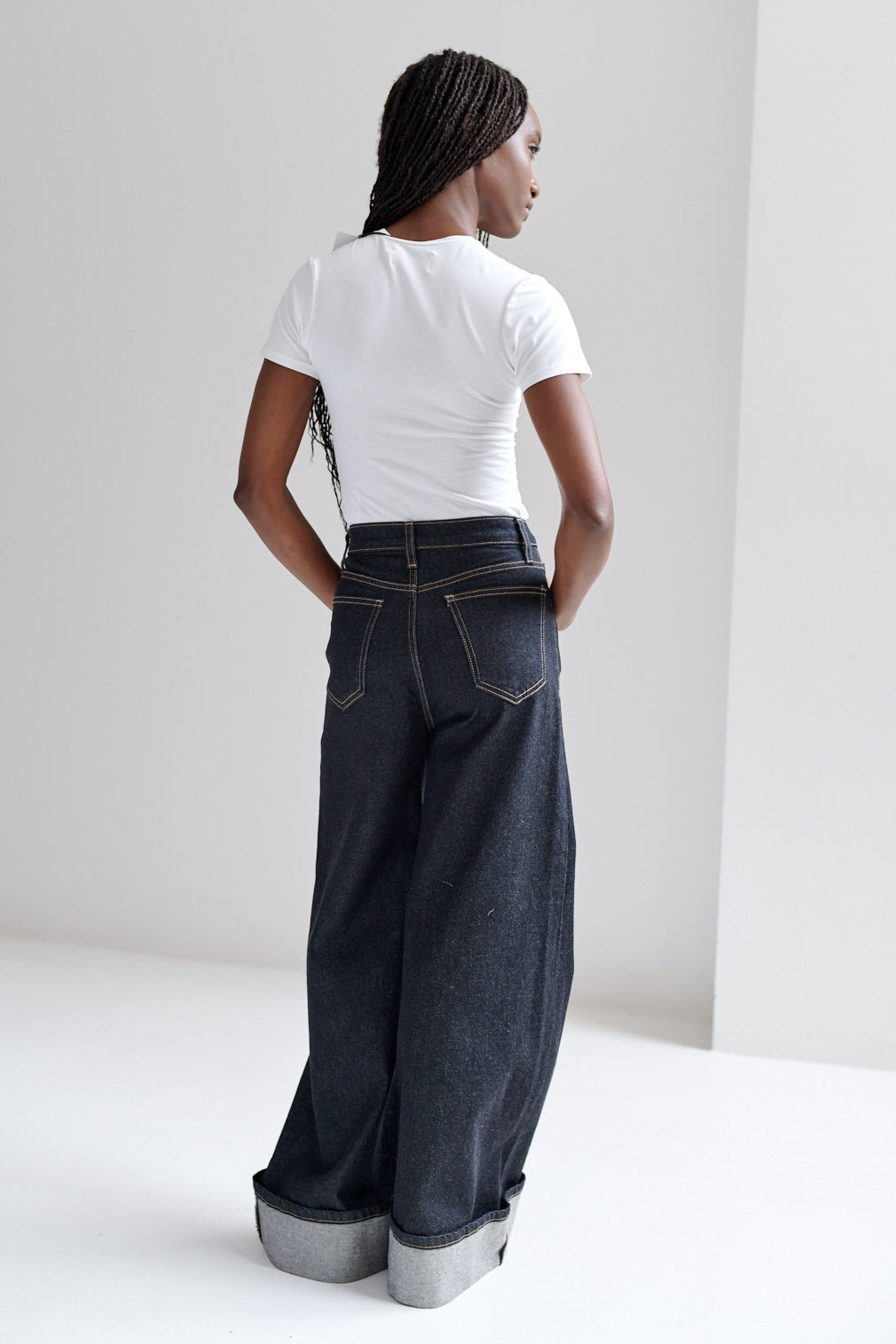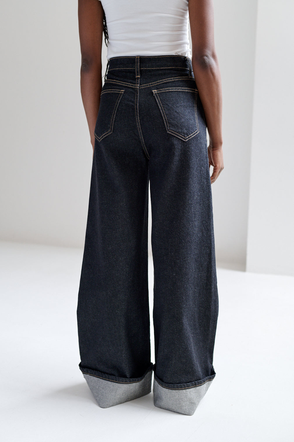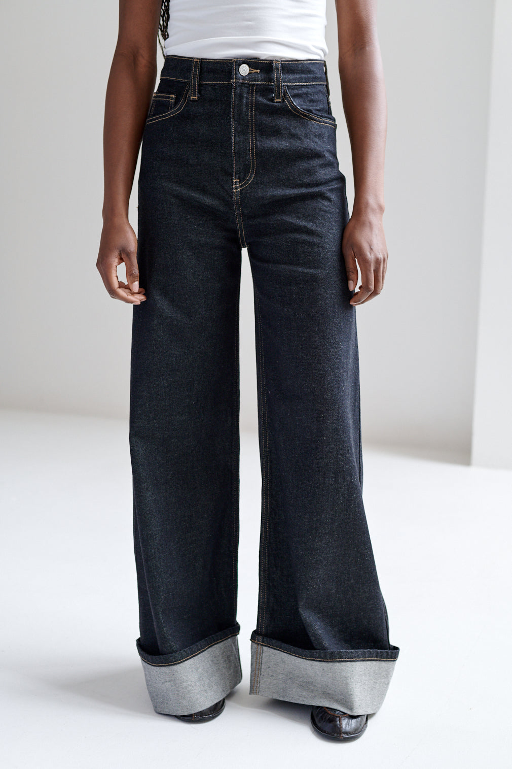 Pantalón de corte recto con dobladillo ancho hacia el exterior. Fit wide leg, de caída fluida y estructura relajada.