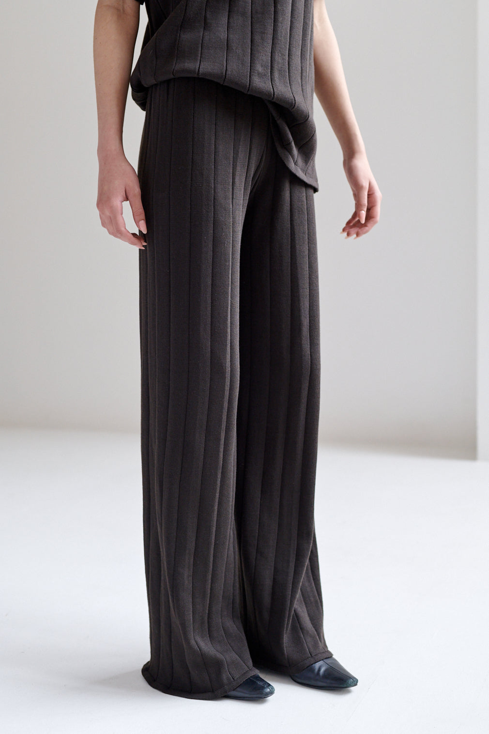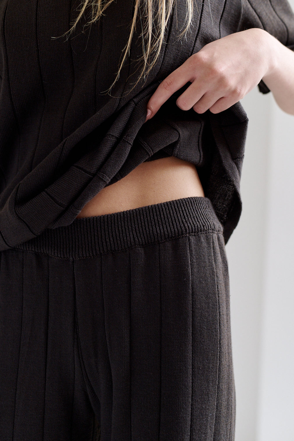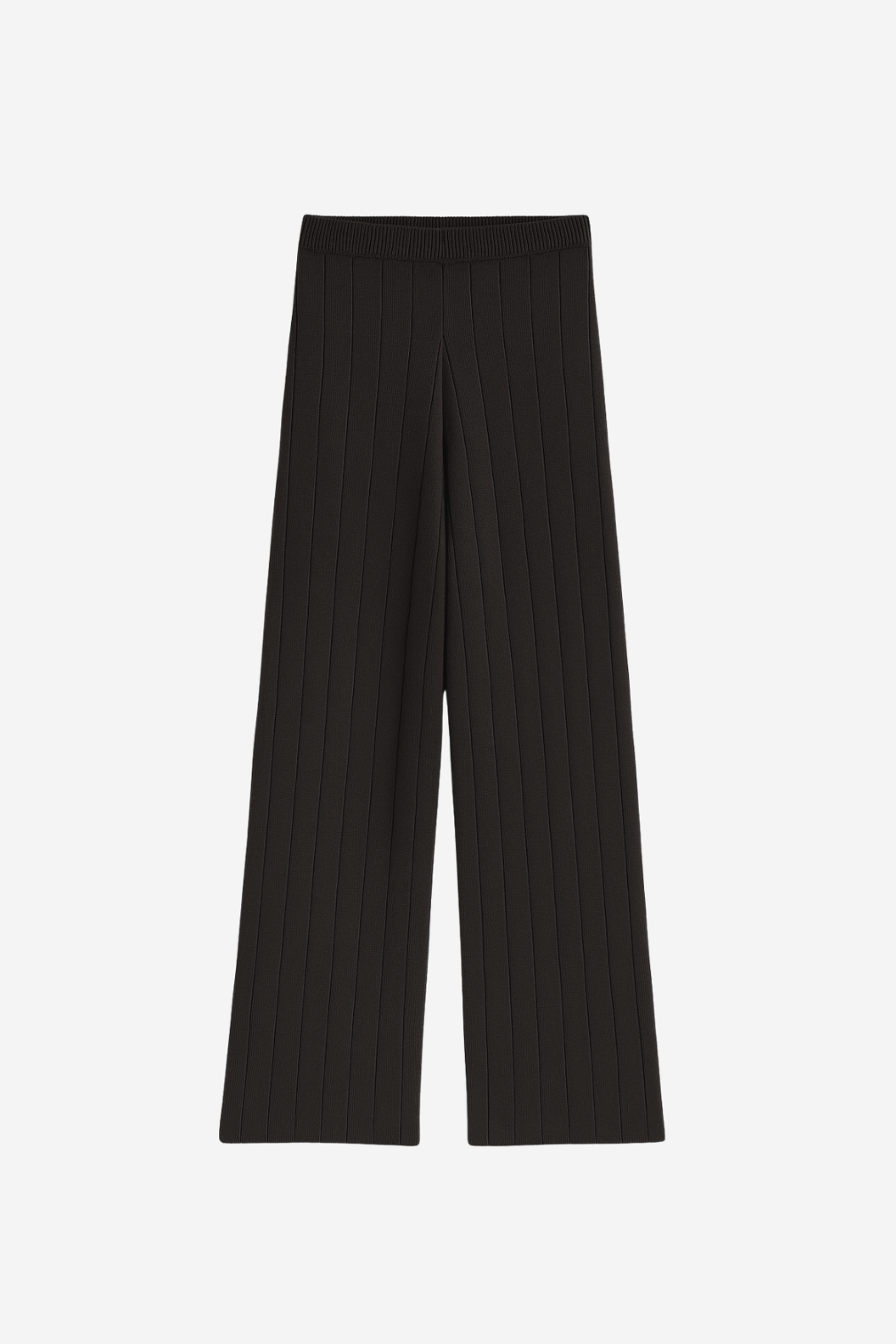 Pantalón tejido de tiro alto, pierna recta con resorte en cintura.