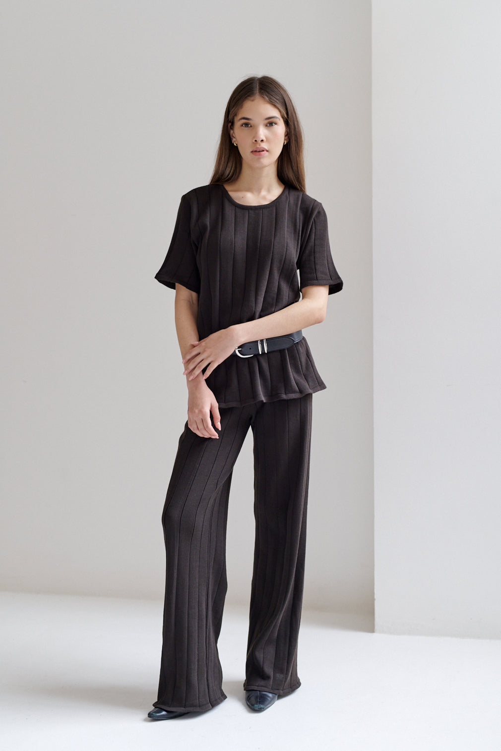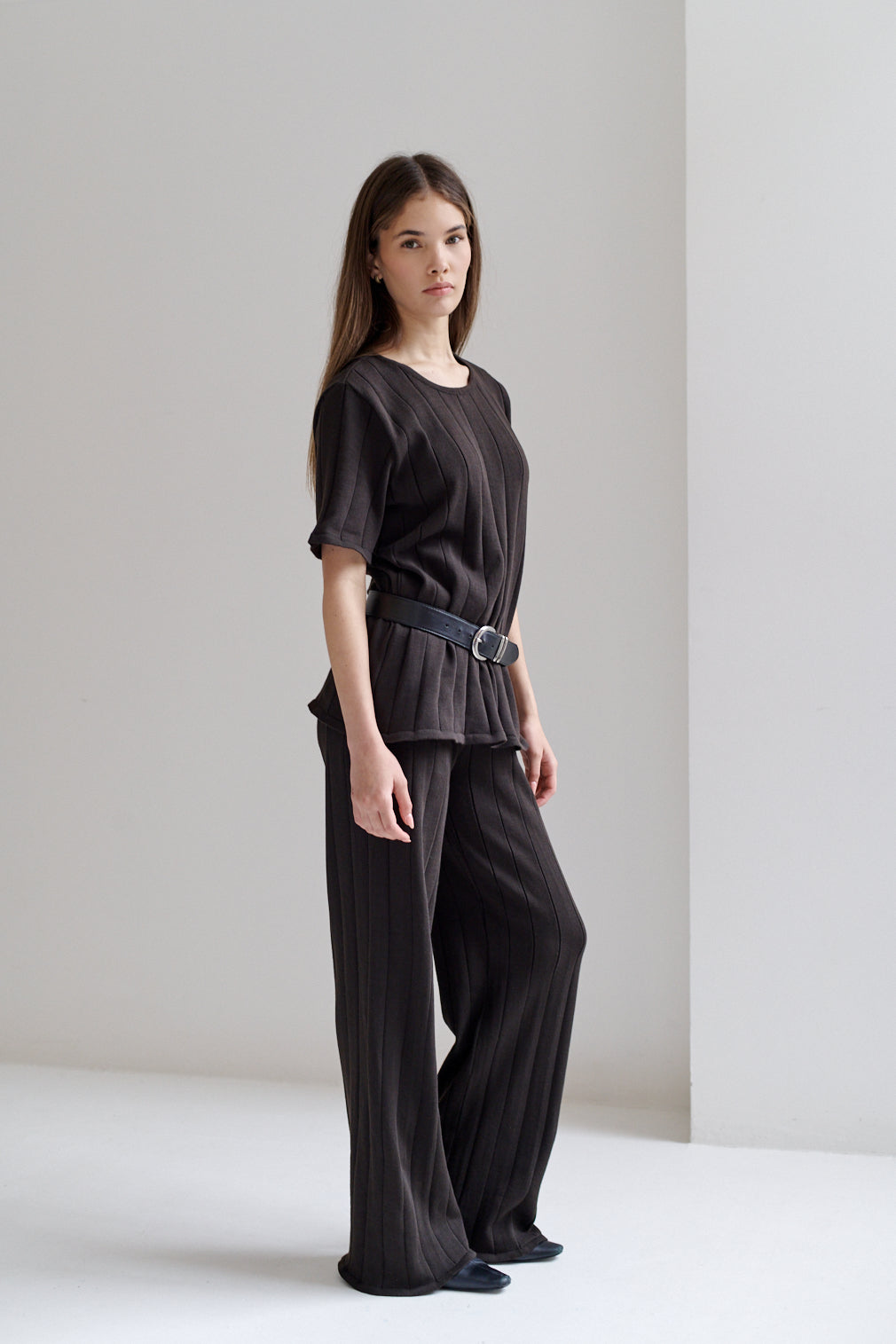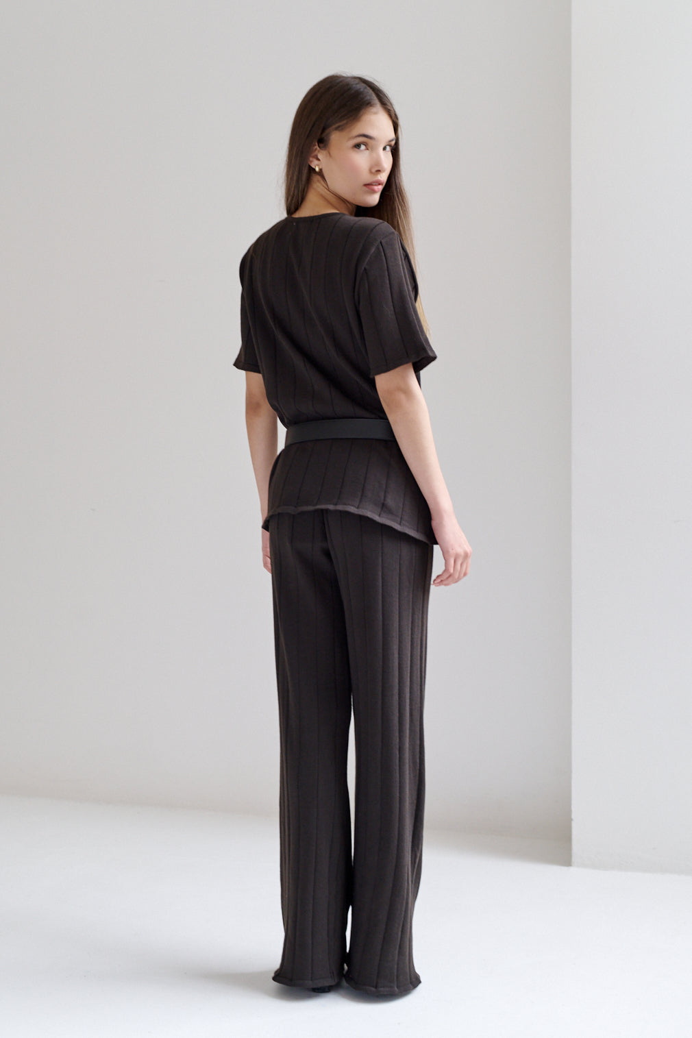 Pantalón tejido de tiro alto, pierna recta con resorte en cintura.