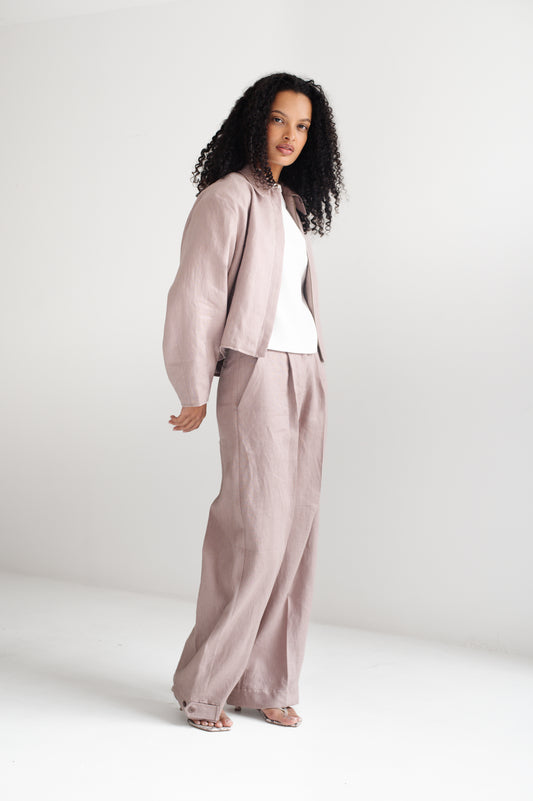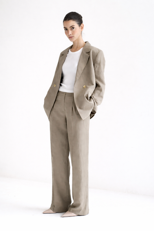 100% LINO Pantalón de tiro medio con pierna amplia y pinzas frontales. Bolsillos laterales y...