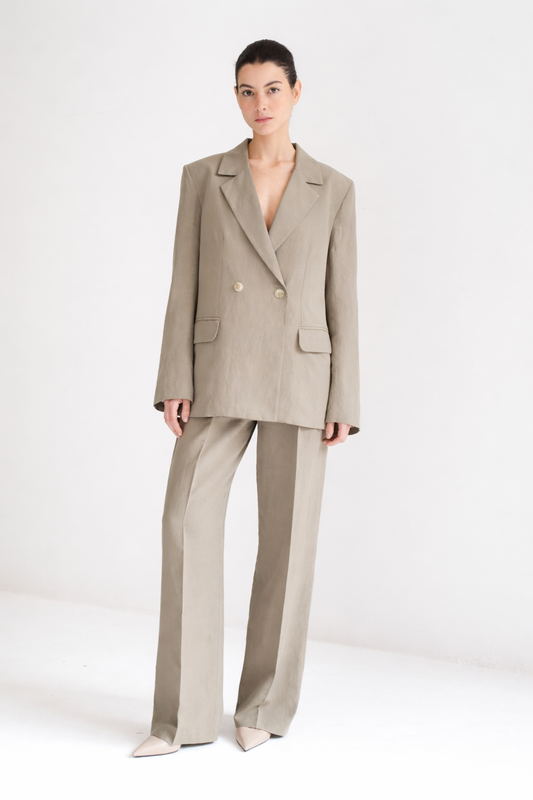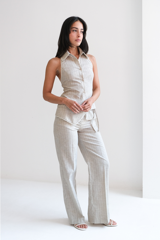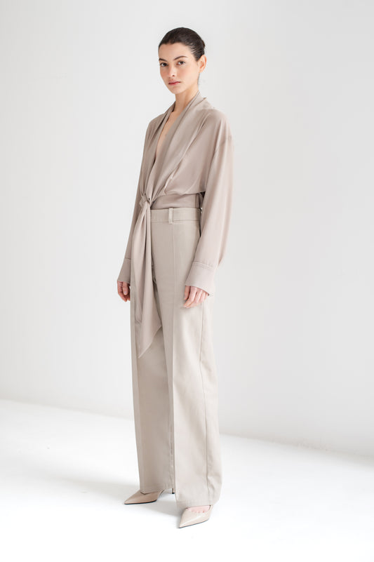 Pantalón fluido con doble pinza al frente.