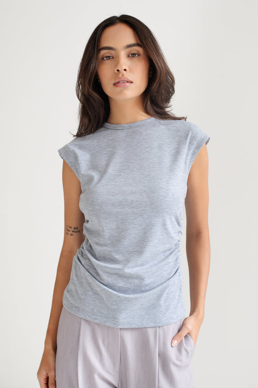 Tank top con cuello redondo y fruncido en los costados.