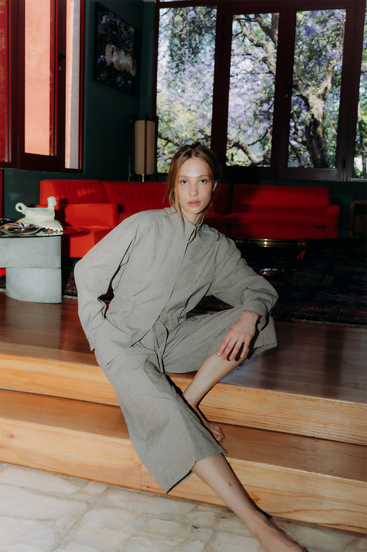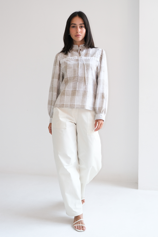 100% ALGODÓN Camisa con hombreras, cuello clásico y cierre frontal de botones. Detalle de lazo...