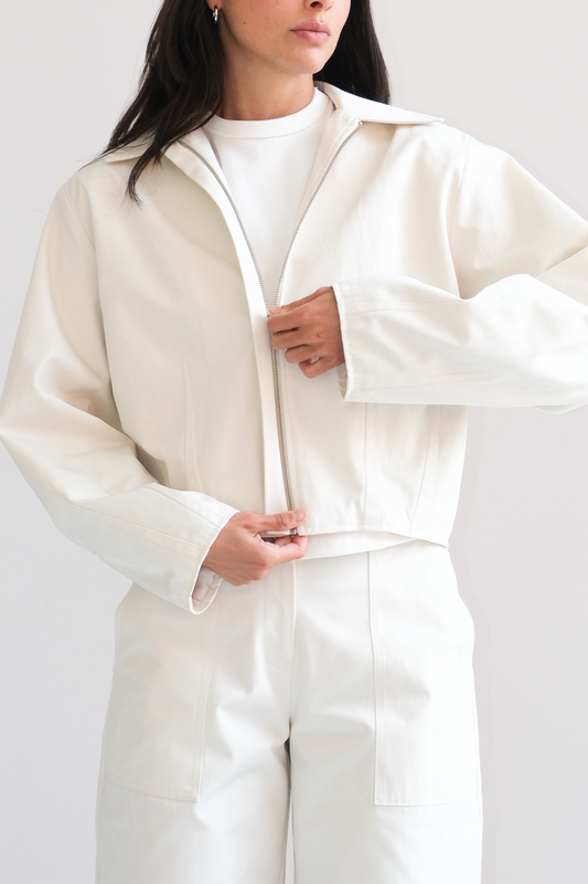 100% LINO Chamarra tipo bomber de cuello clásico con cierre frontal oculto y detalles de...