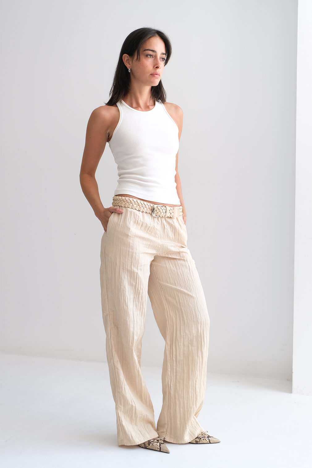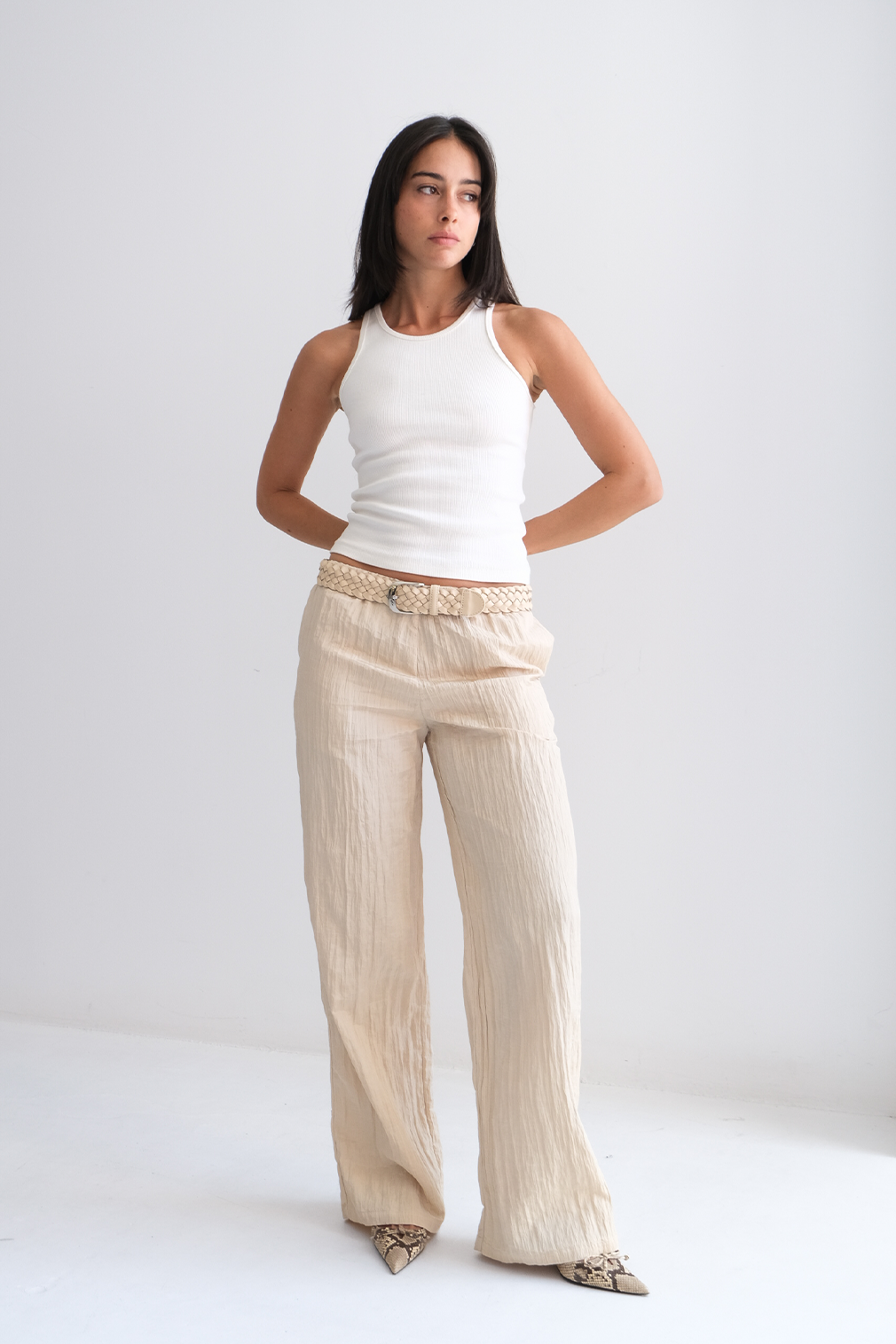 El largo del cinturón ha sido cuidadosamente ajustado para cada talla, asegurando una caída equilibrada y un ajuste cómodo: